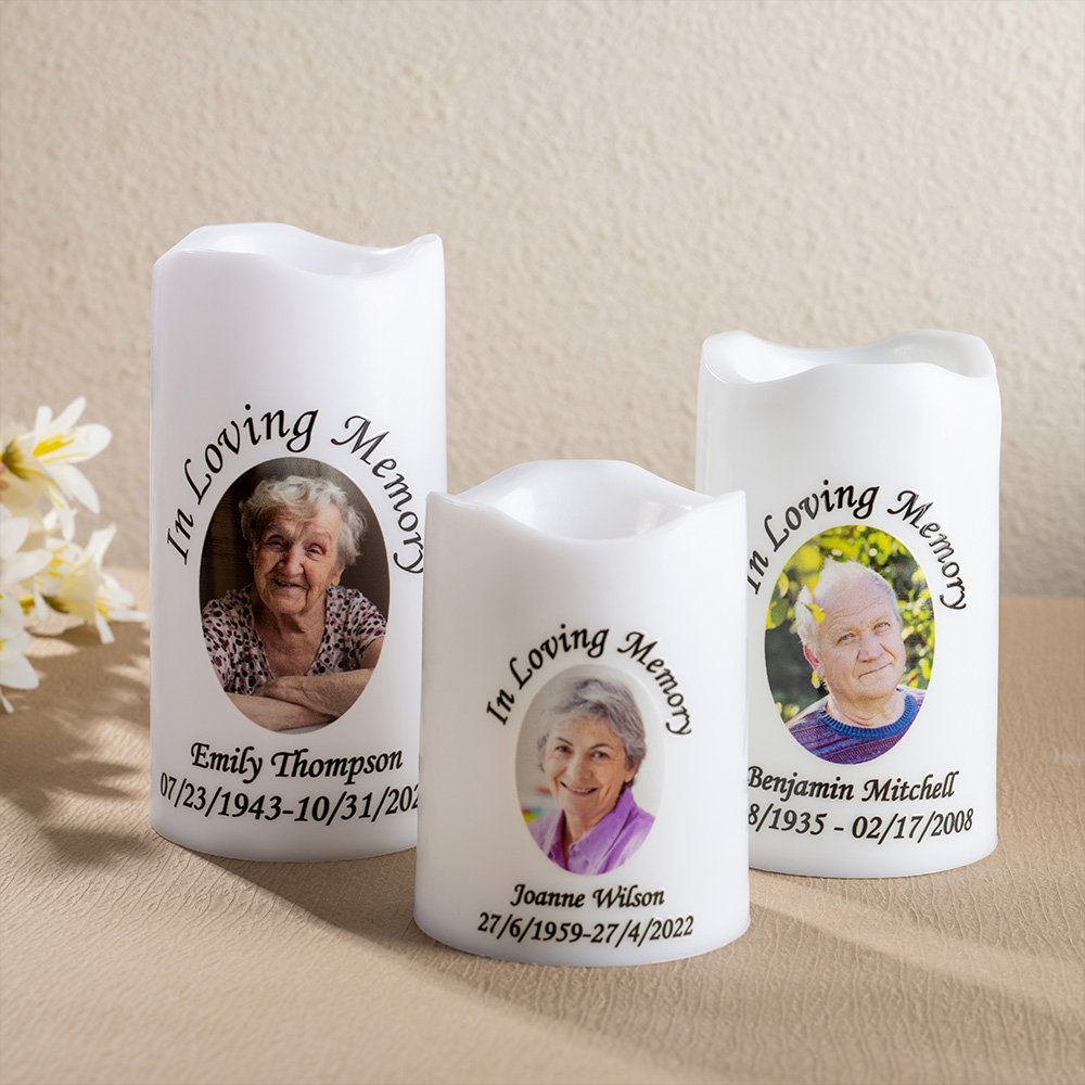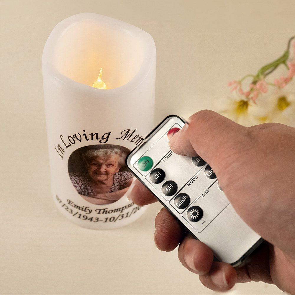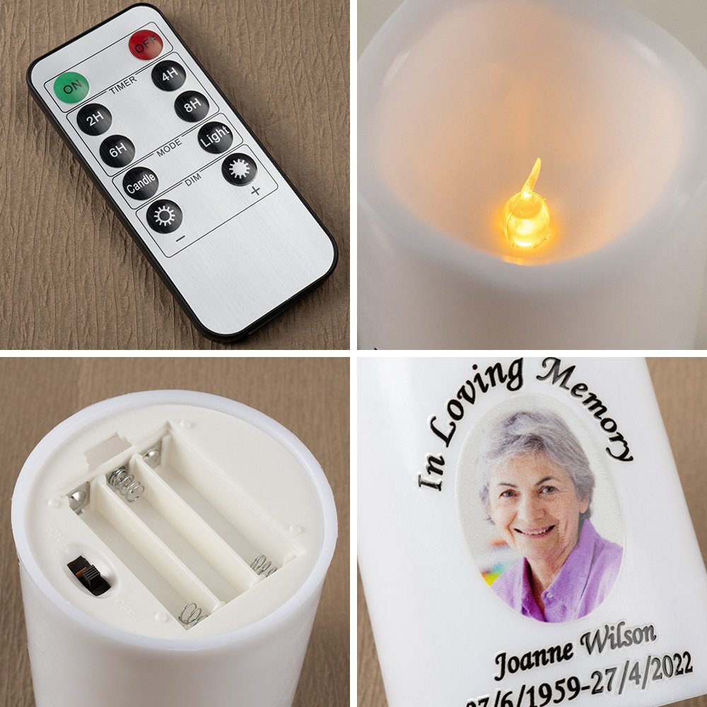 The photo, name, and date of the deceased lover can be customized on this candle, making this candle full of personal and commemorative significance. "Those who touch our lives, stay in our hearts forever." is printed on the back of the candle to express the memory of the deceased. The appearance of the candle is no different from that of a real candle, but it is a flameless LED candle, which is not only safe and environmentally friendly but can also forever preserve this precious memory.