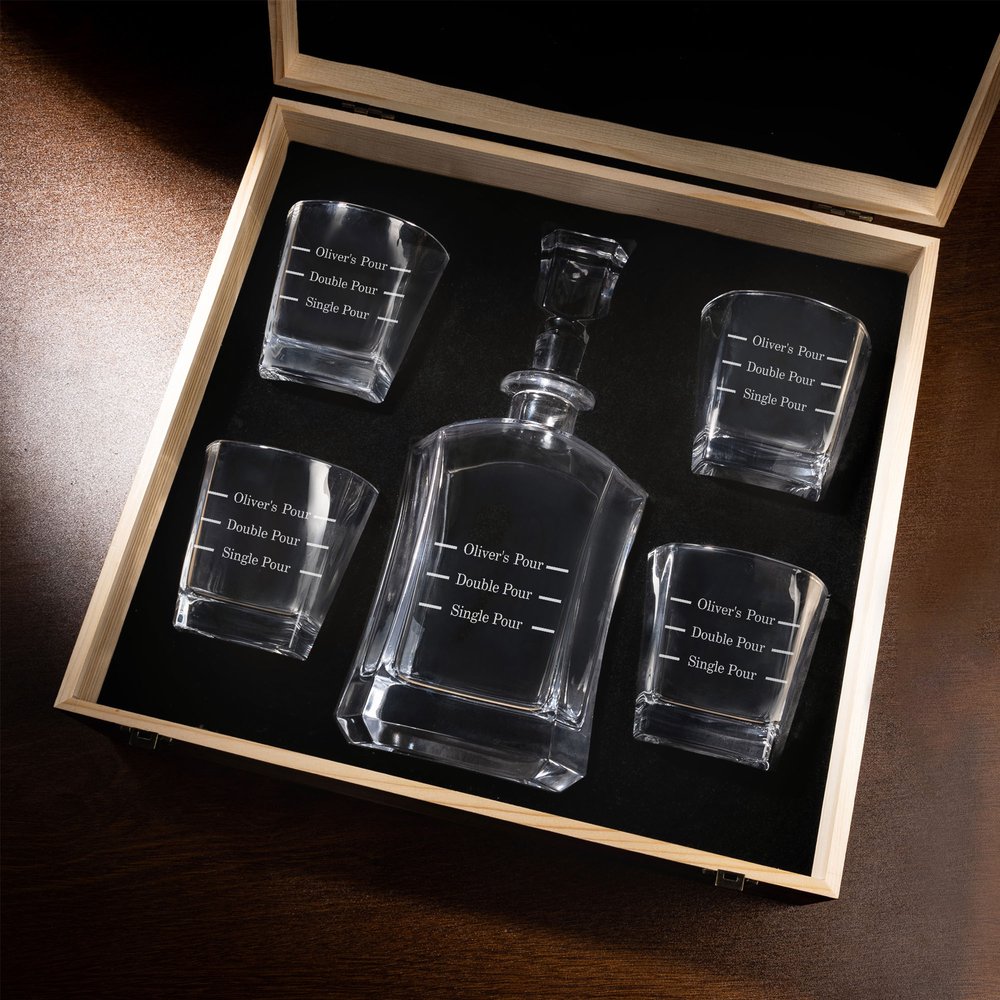Our hexagonal decanter features a unique design with three graduated pour markings, allowing you to see the volume of wine easily. This not only adds a touch of fun but also serves a practical purpose. It can be customized with a specific name, showcasing a refined and luxurious lifestyle, adding a personalized touch, and transforming an ordinary wine accessory into a cherished keepsake, possessing both practical and collectible value.