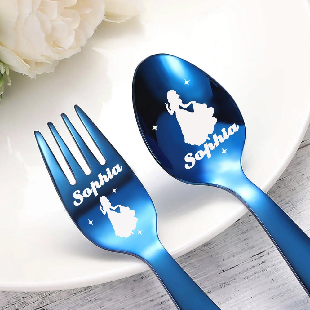 This princess tableware is the best gift for kids. Children's favorite princesses are engraved on the spoon to make eating more fun. The pattern is laser engraved and can be preserved forever. The spoon is healthy and hygienic, and it is easy for children to hold. It is specially designed for children who love princesses.