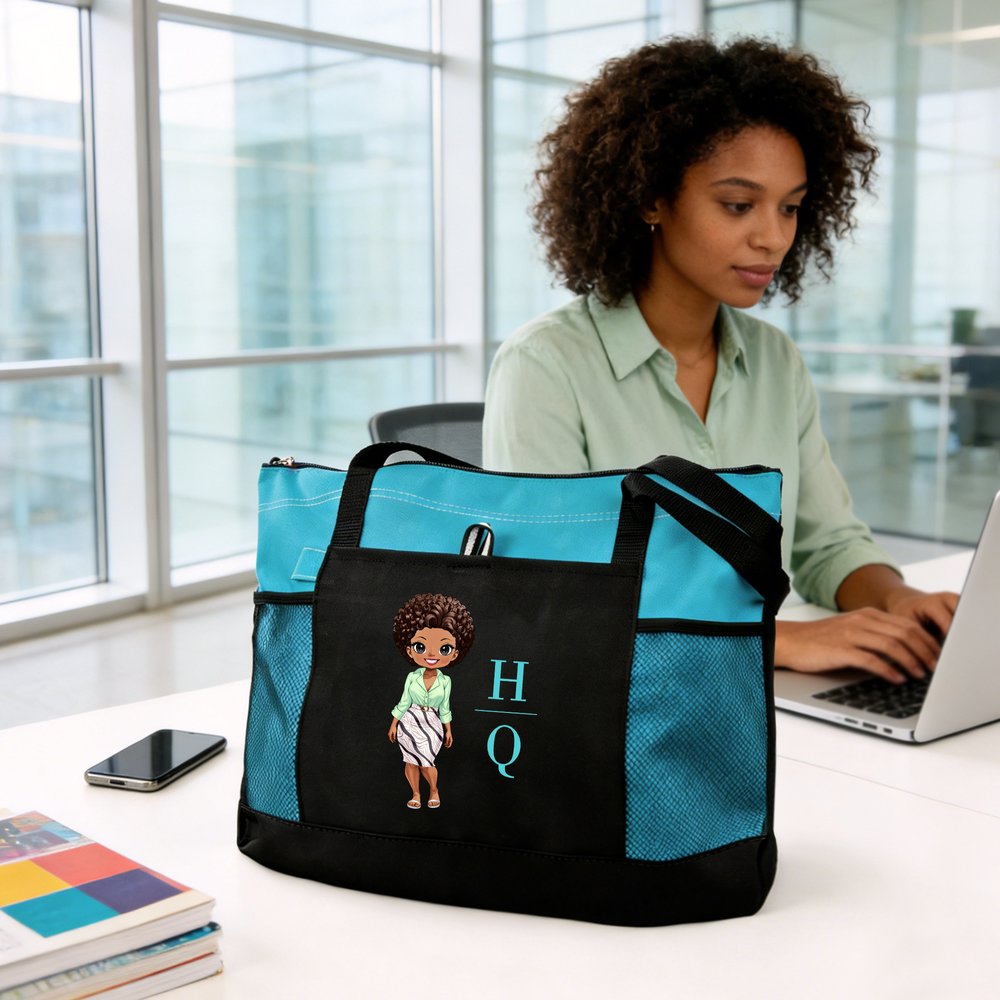 Inspired by the workplace commute, this tote bag features a cartoon character in a suit, available in multiple colors and gender-specific options. Custom names are also available, allowing you to create a personalized work bag.