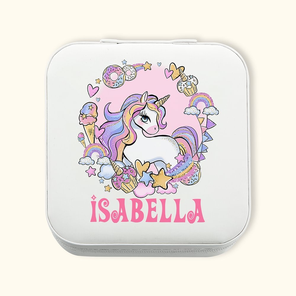 The girl jewelry box contains sponge strips for rings/studs, 4 compartment dividers, elastic pocket for chains. Bracelets and small accessories like lipstick, brooches, and watches can also be kept.