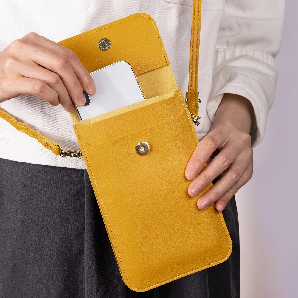 During daily shopping, mobile phones, bank cards, and cash can be stored in an orderly manner, without the need to frantically search; When going out or attending concerts at night, the small size will not become a burden, and it can also protect valuable items properly; During travel, the adjustable shoulder strap can adapt to different outfits, freeing up hands for easy photography and carrying luggage. Equipped with a clear touchscreen window, allowing you to use your phone without taking it out of your wallet.