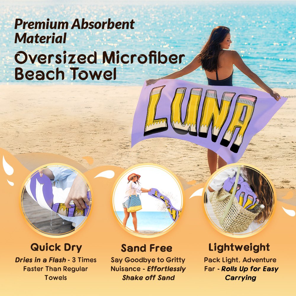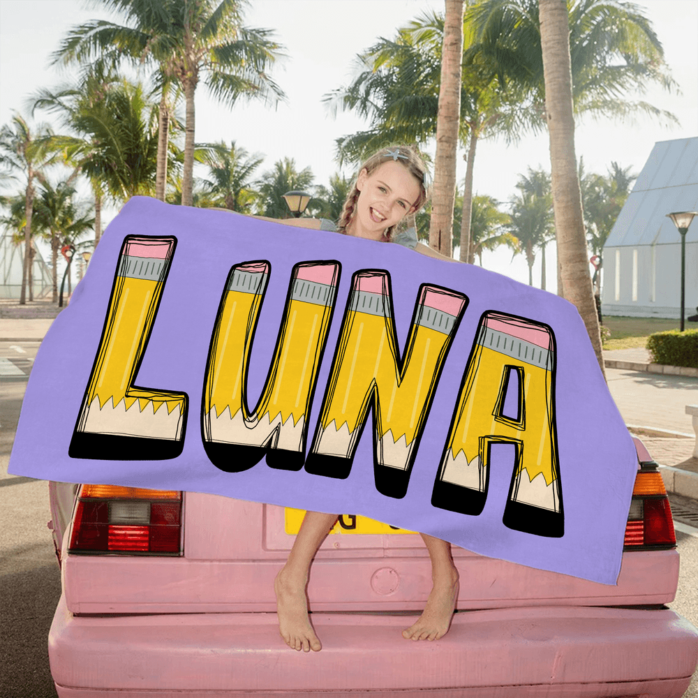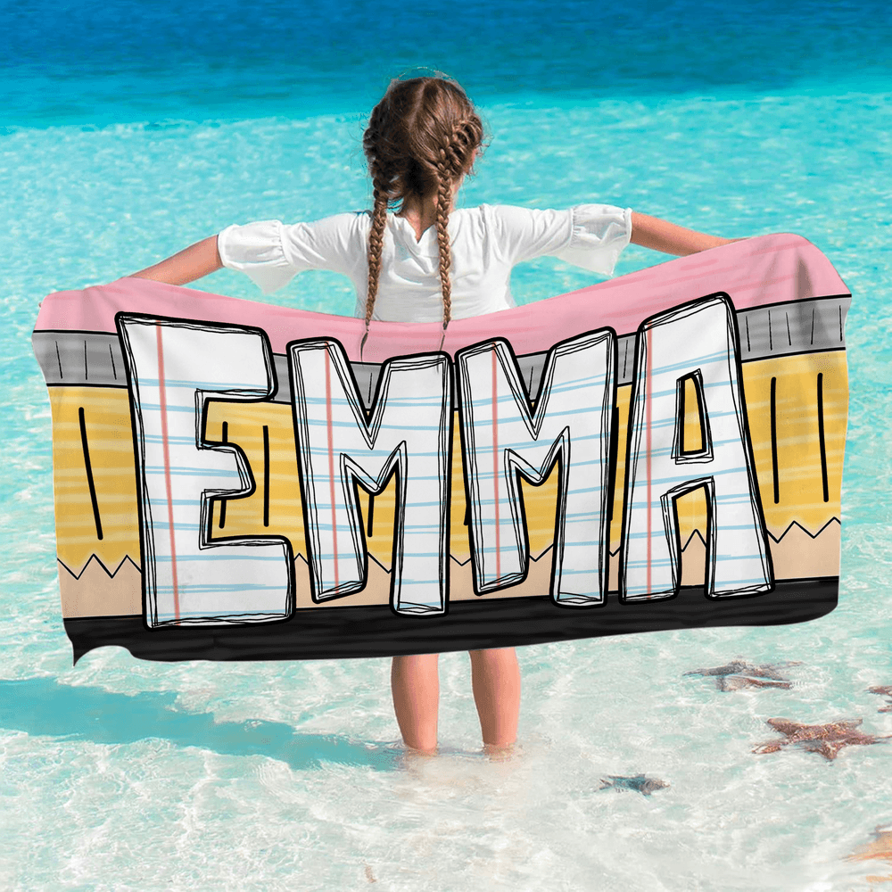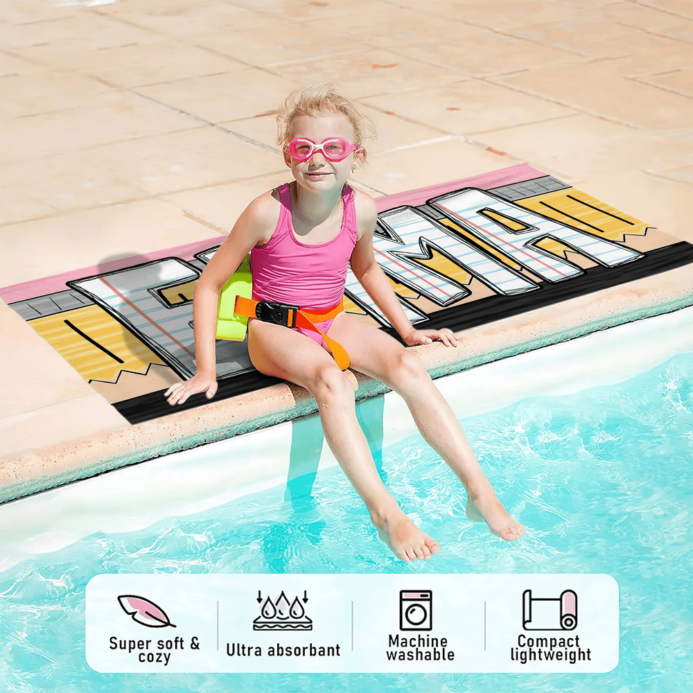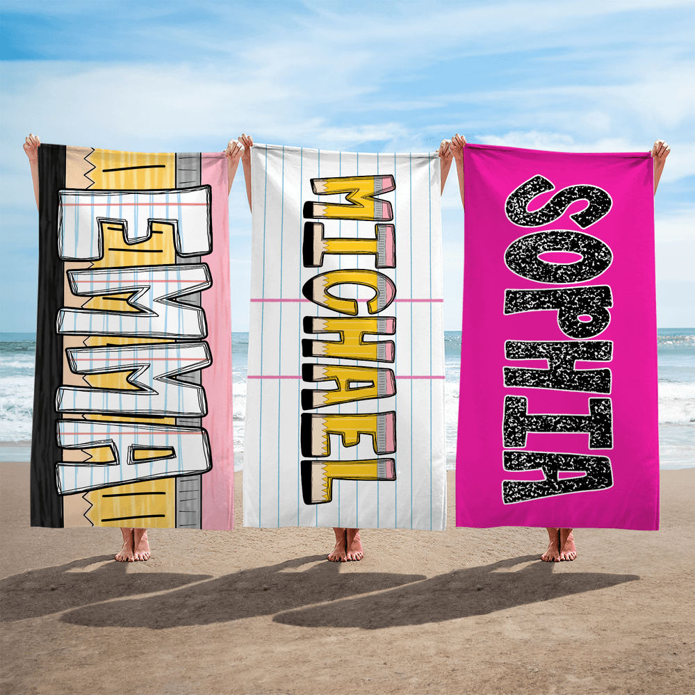 Featuring a playful back-to-school theme with cute alphabet elements, this personalized beach towel adds a touch of youthful energy to every outdoor moment. Customize it with a name to create a unique piece that reflects personality and school spirit.