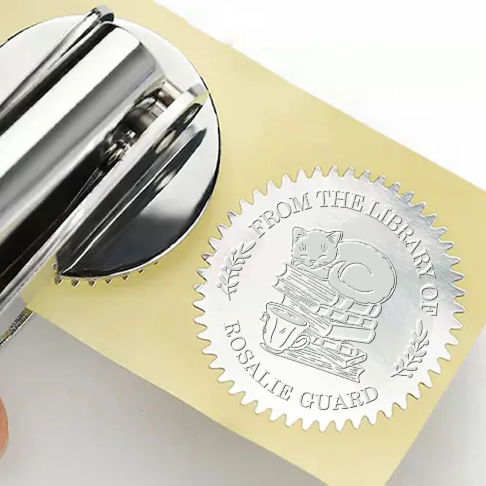 Use this product to emboss your books, envelopes, or library cards with the charming black cat design. The raised impression adds a distinctive and elegant touch to your reading materials, making them stand out and adding a touch of sophistication to your personal library or correspondence. It's a creative way to personalize your belongings and leave a lasting impression.