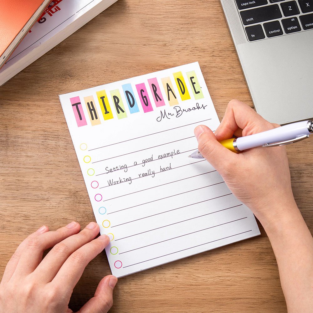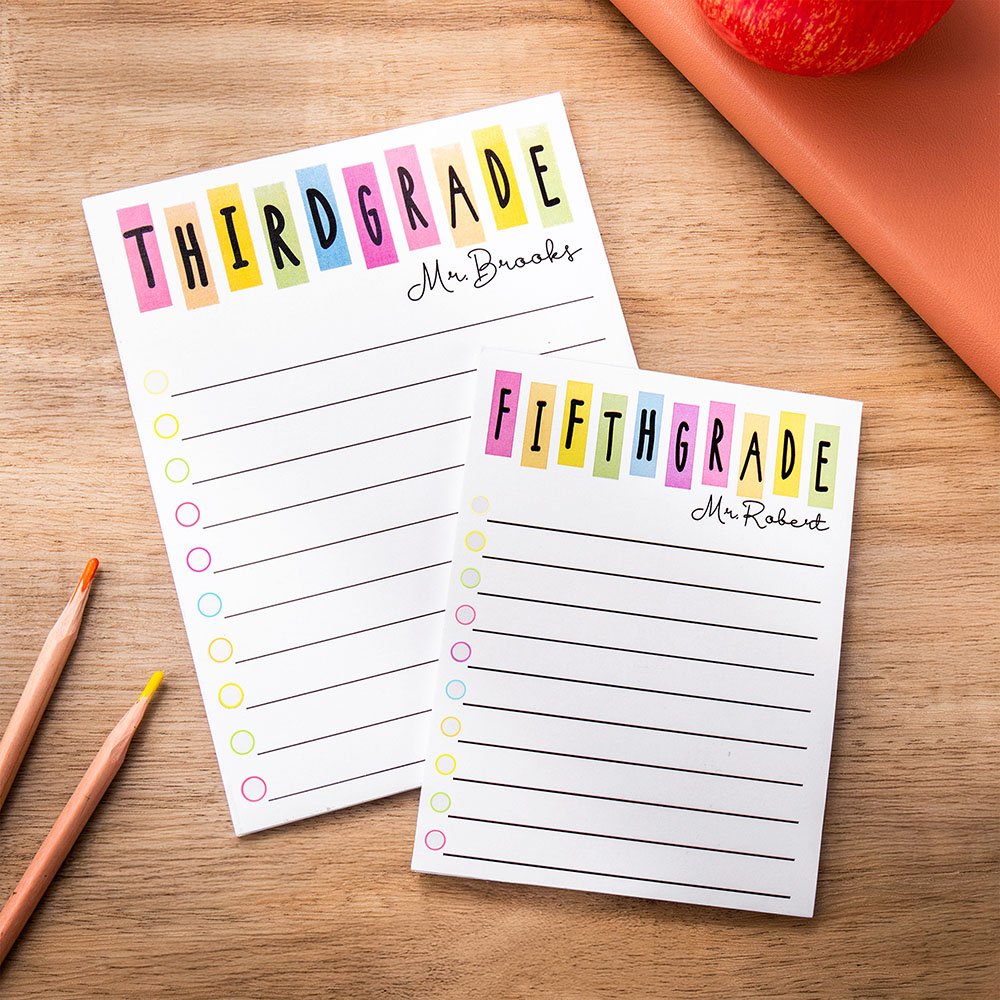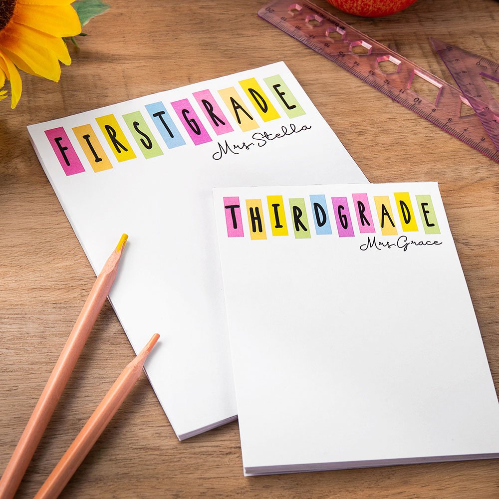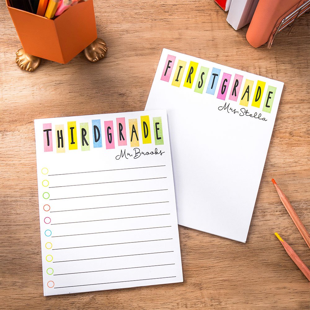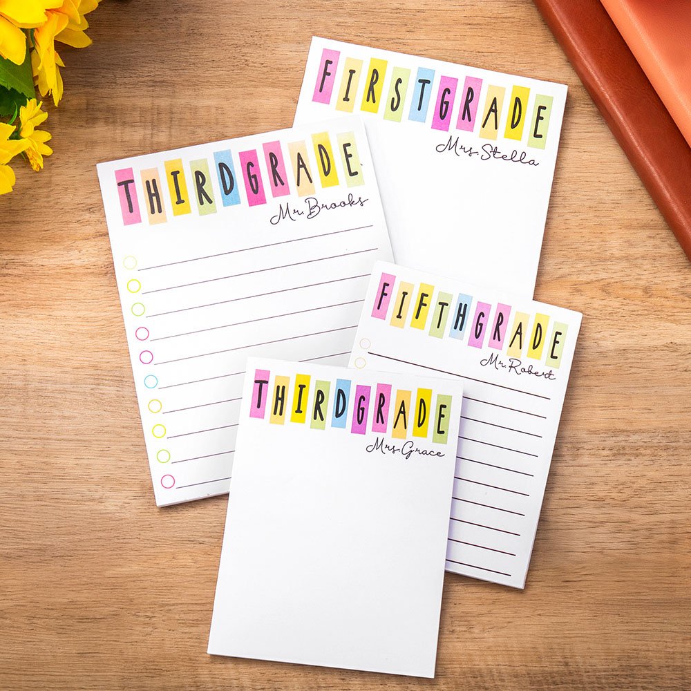 This personalized colorful notepad is designed to express respect and gratitude for teachers. The customizable grade on the top is surrounded by a colorful layer, combined with the customizable teacher's name, reflecting the love for the education industry and showing special care for teachers.