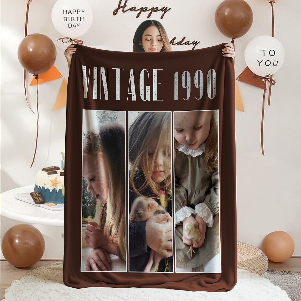 This birthday blanket features a modern and simple design. You can customize 1-4 color photos and add exclusive elements such as blessings and birth year to create a unique commemorative gift. The colors are bright and long-lasting, and the overall design is both fashionable and full of emotional warmth.