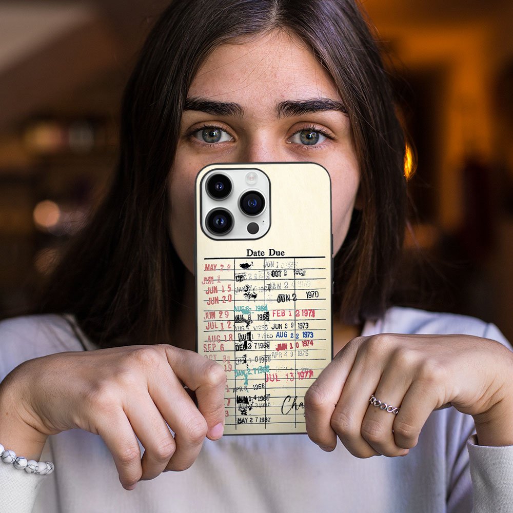 This phone case features a vintage library date due card print that brings back the nostalgia of old-school libraries. The design is available in both colorful and black options, allowing you to choose the one that suits your style.