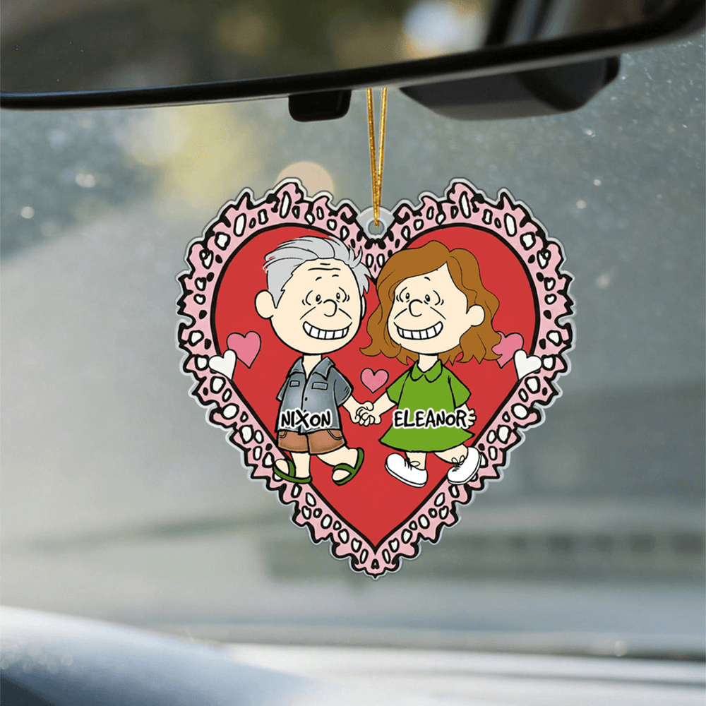 Personalized Romantic Cartoon Couple Acrylic Ornament with Name Car Decor Valentine's Day Anniversary Gift for Couples