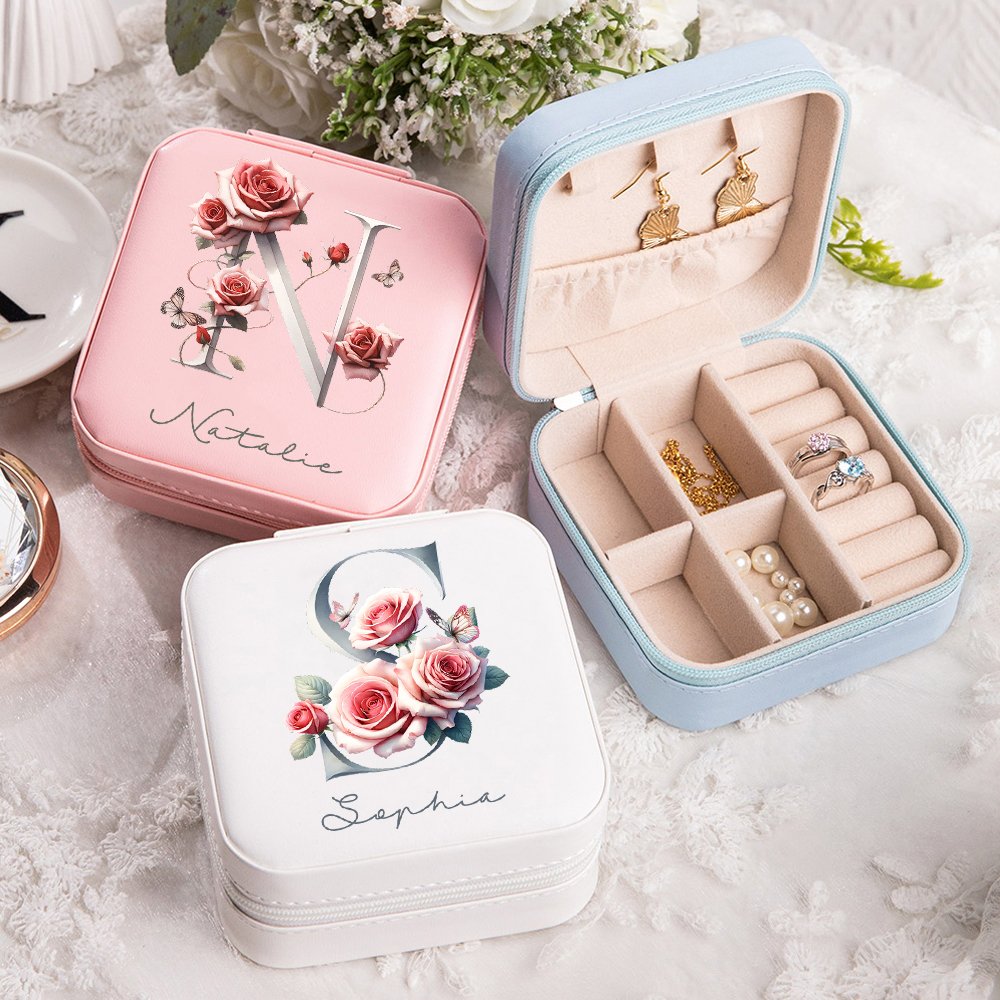 The jewelry box features a exclusive design with the option to add initial and a name. Each initial is beautifully embellished with butterflies and roses, making it a personalized gift and meaningful keepsake. Let your loved one know that they hold a special place in your heart.