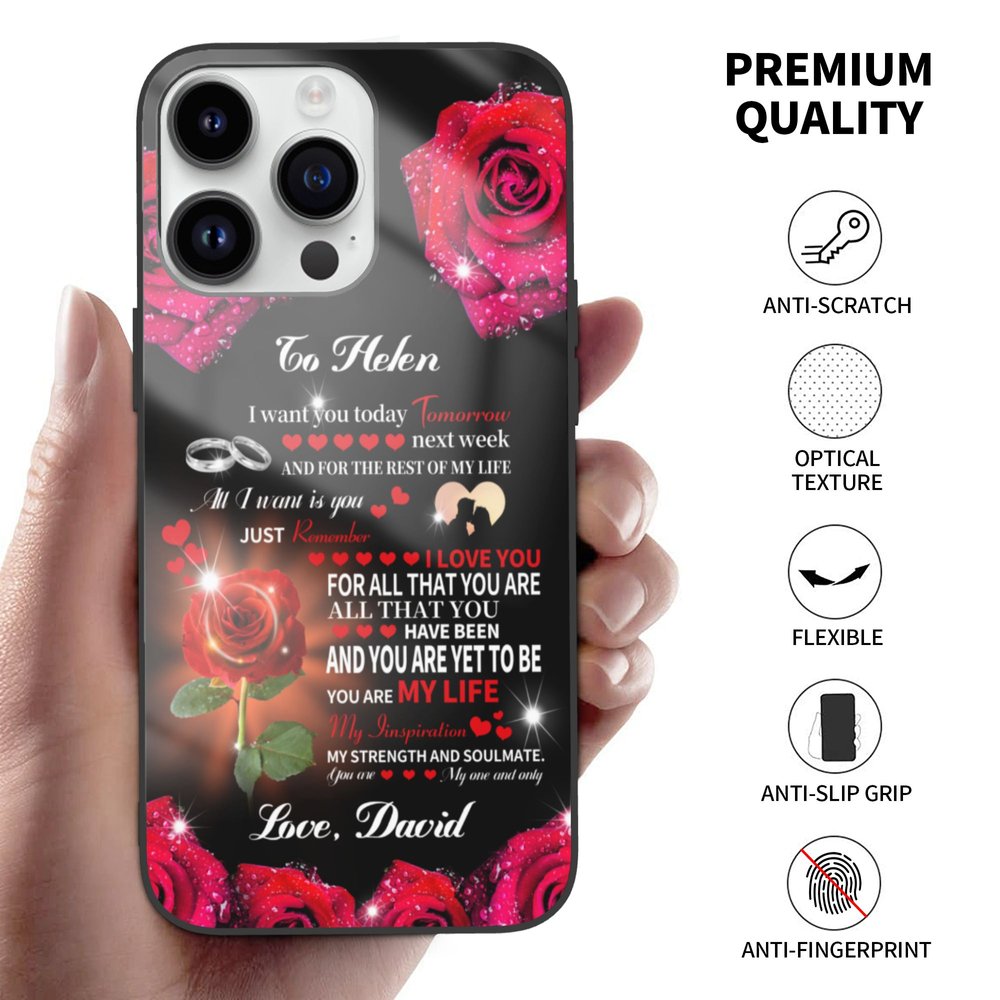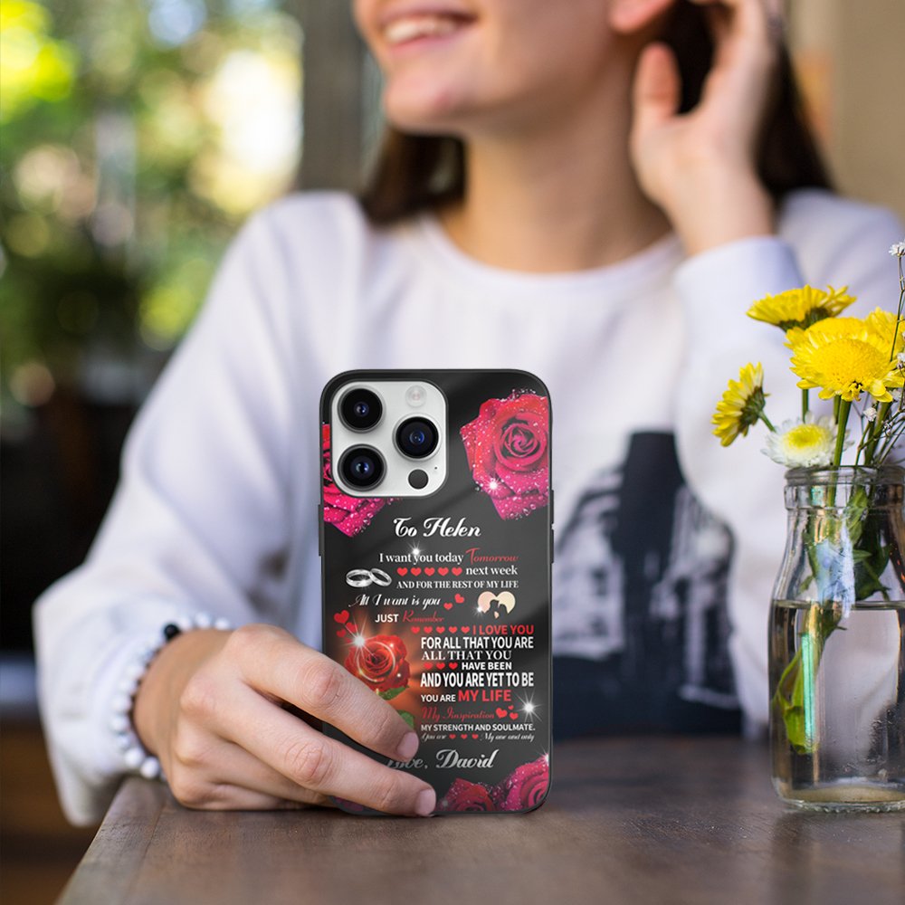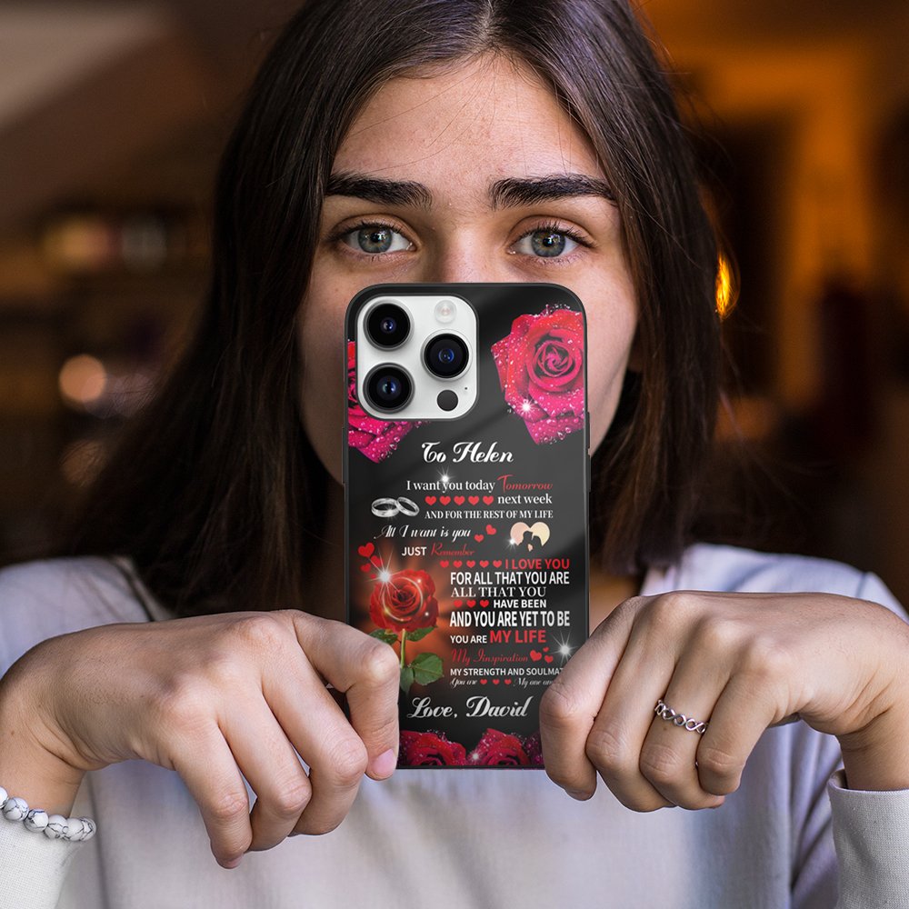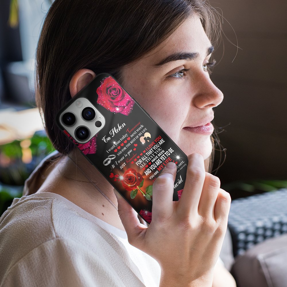 Designed with a rose pattern and love quotes, this phone case with a unique pattern that makes your phone look different. You can enter the couple's name to make the phone case unique.