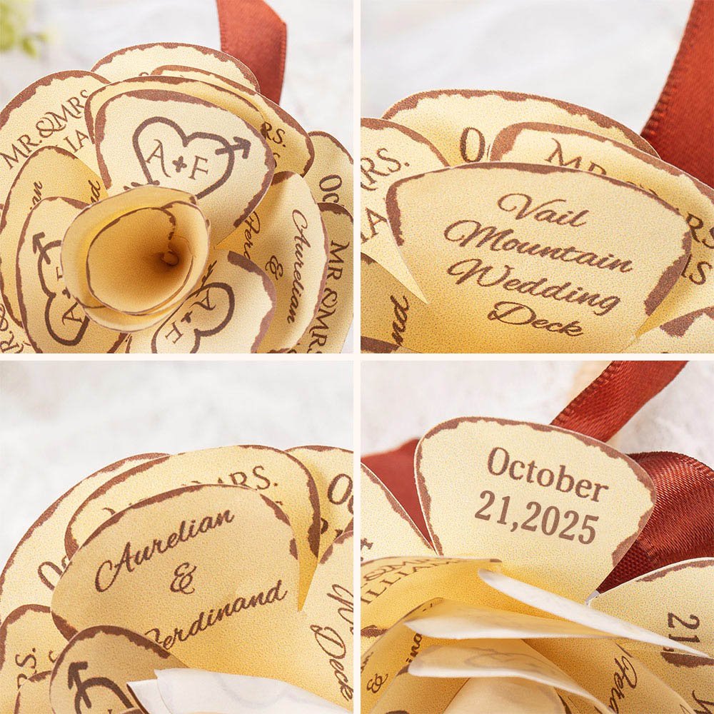 The personalization option allows you to add the couple's initials, first name, last name, wedding venue, and date to the petals, making this a memorable piece that reflects the couple's unique love story.