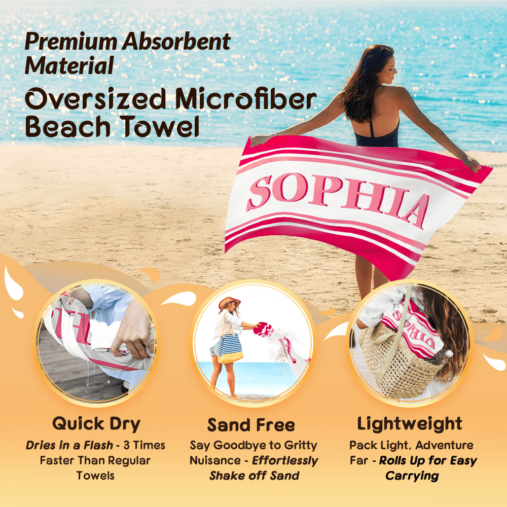| Feature: | Super Absorbent, Fast Drying, Sand Free, Durable and Soft, Oversized, Lightweight and Portable, Shadow Name Design |