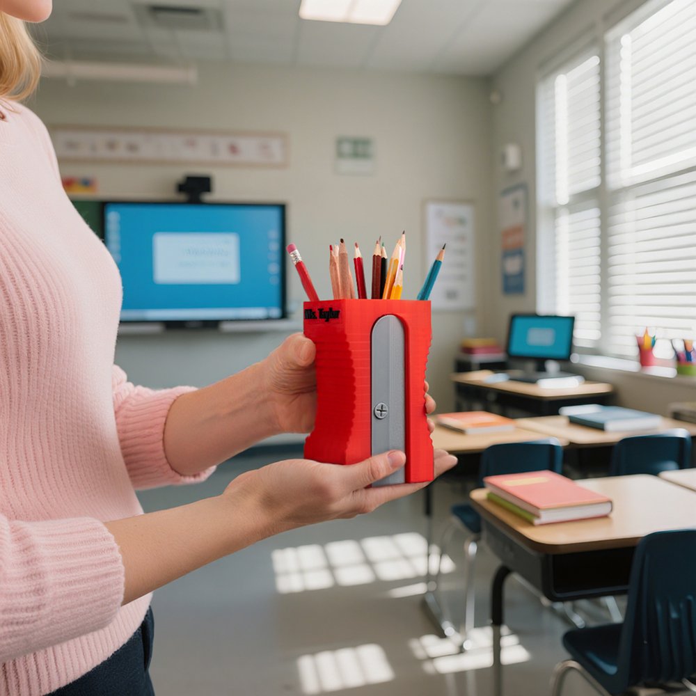 This pencil-shaped sticky note box and sharpener-shaped pencil holder, inspired by classic stationery, create a unique desktop landscape. Every detail has been carefully designed. Not only can they be customized with a name or a short message, but they also come in a variety of pen holder colors, allowing you to customize them to your taste.