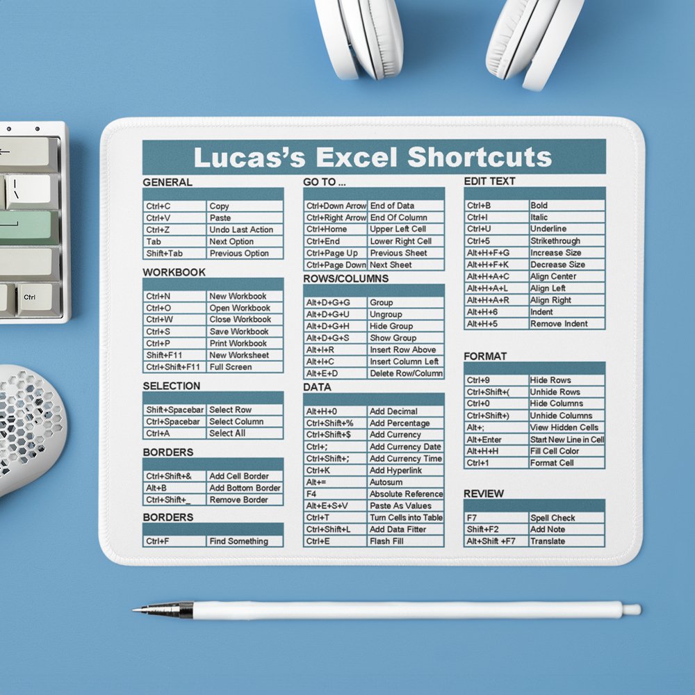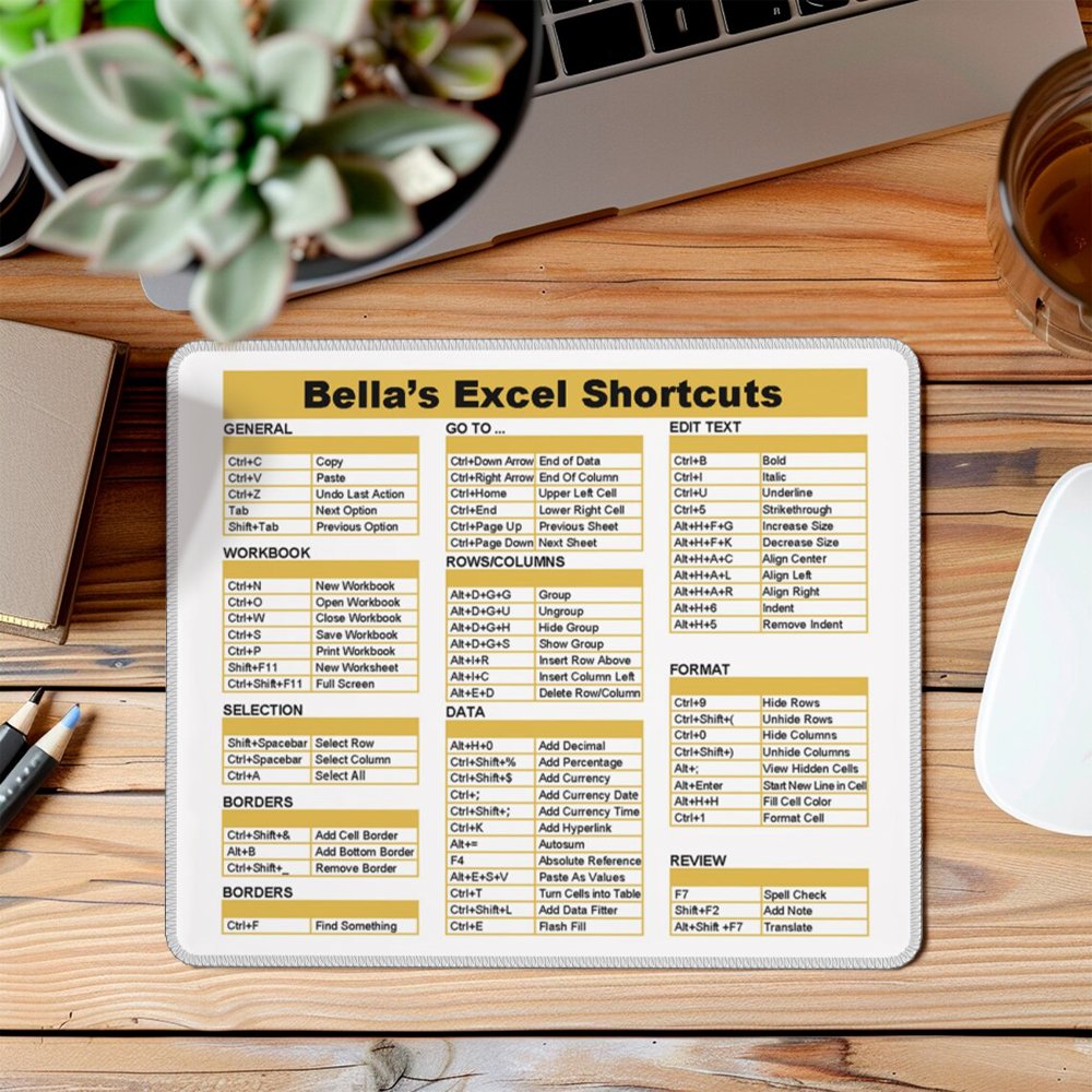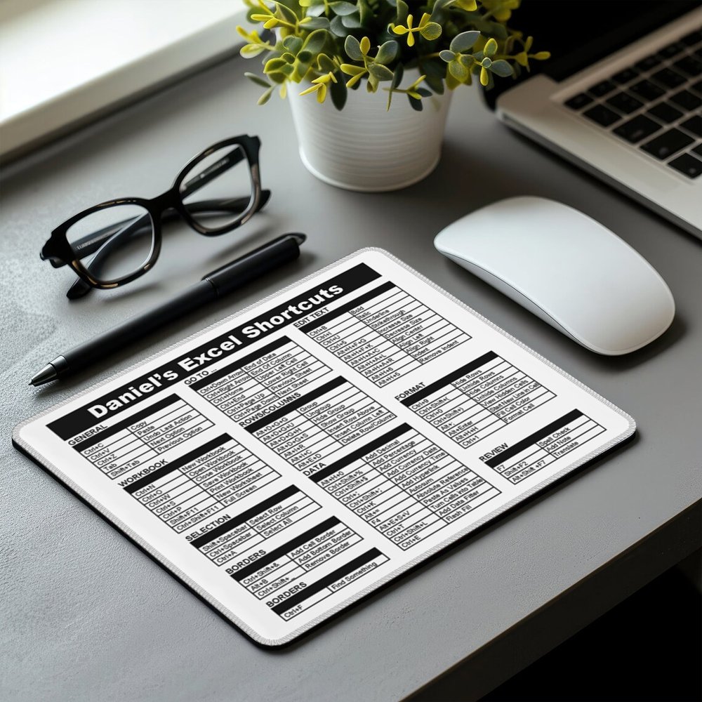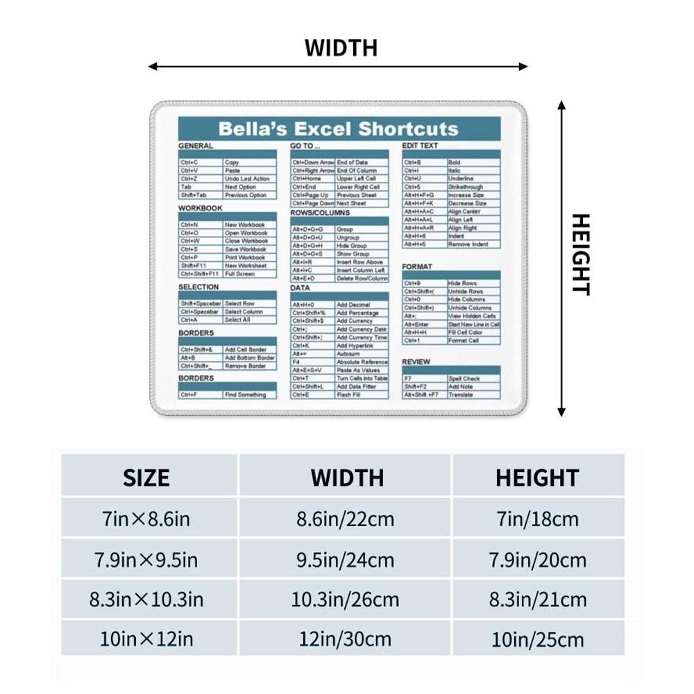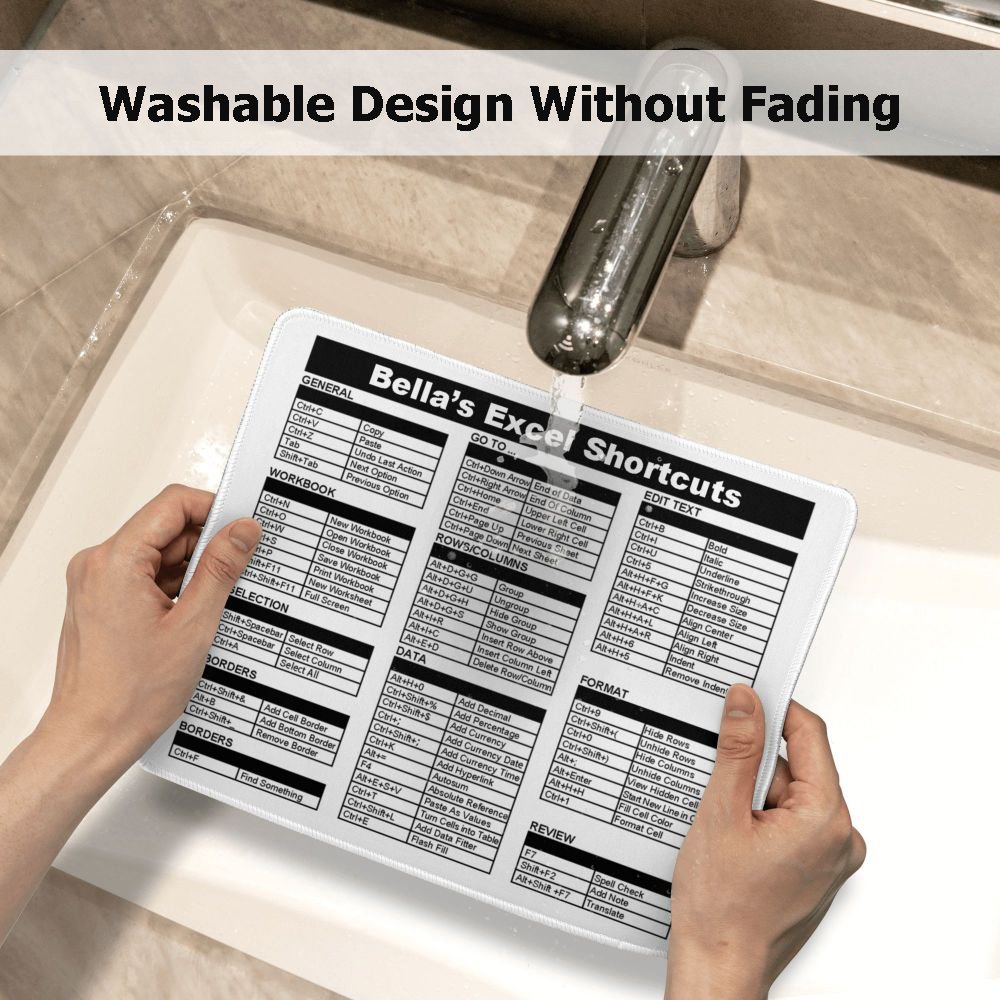 This mouse pad features a creative design with Excel shortcut keys, making it a functional office accessory. The design is both stylish and practical, enhancing your work experience while keeping your desk organized.