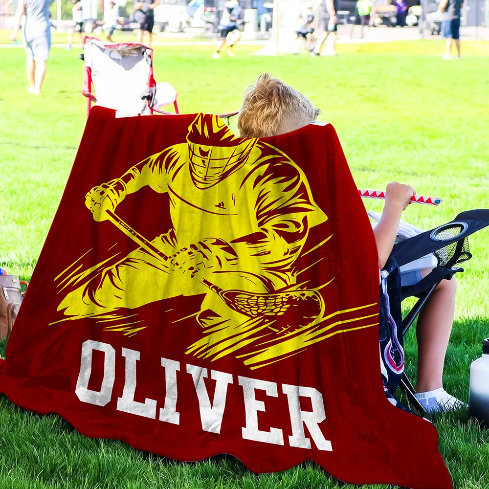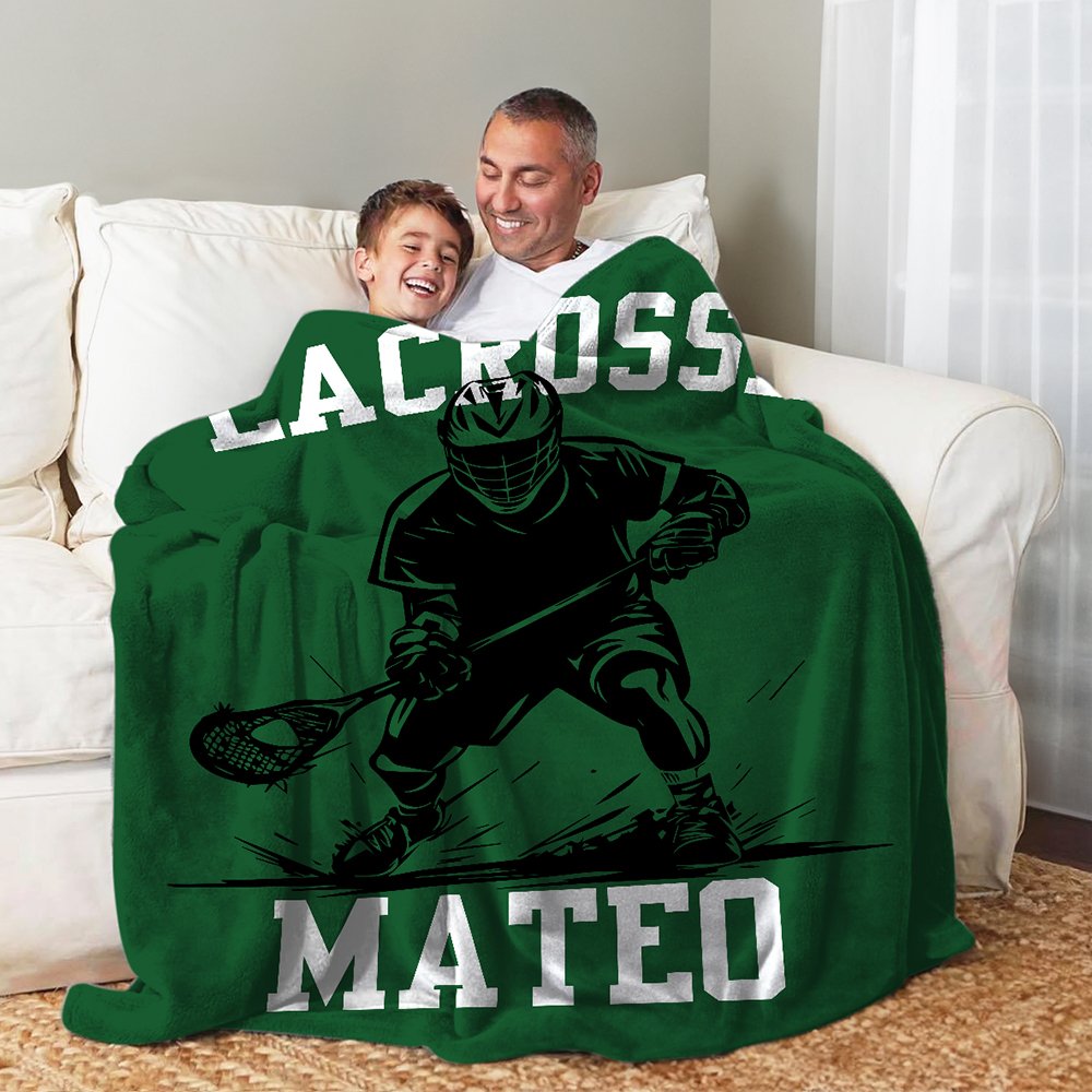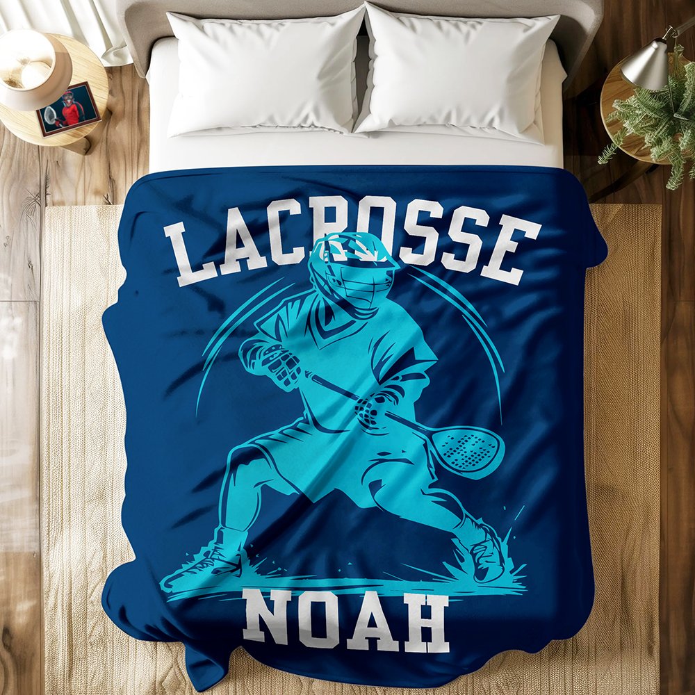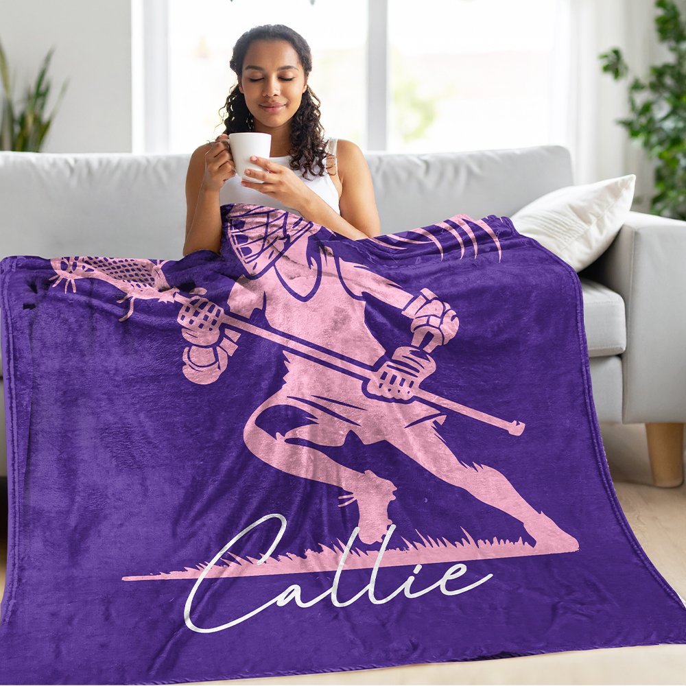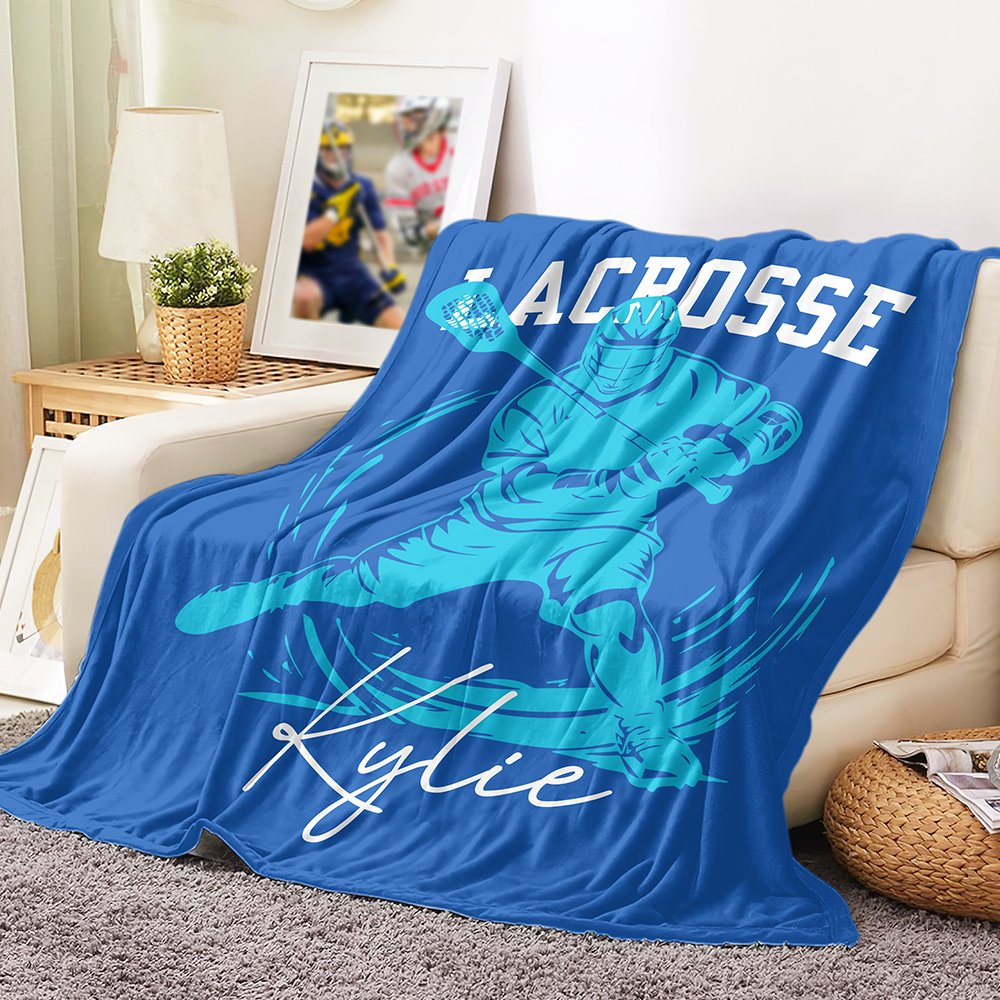 Personalized Silhouette Lacrosse Soft Throw Blanket with Name Home Decor Birthday Gift for Lacrosse Enthusiasts