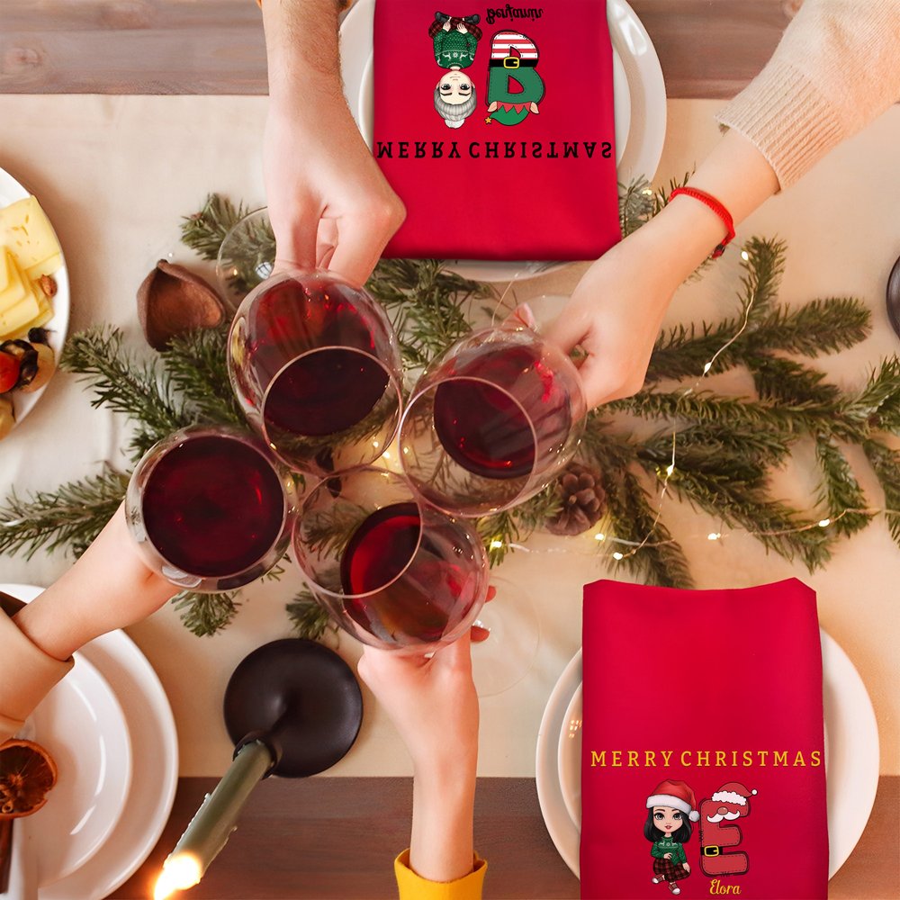 Embossed with Christmas characters and "Merry Christmas," this towel can be customized with family members' images, Christmas-themed initials, and names for a lively and heartwarming look. No need for elaborate decorations, simply place it on your table to instantly bring a festive Christmas vibe, making ordinary mealtimes more ceremonial and adding a special touch to family gatherings.