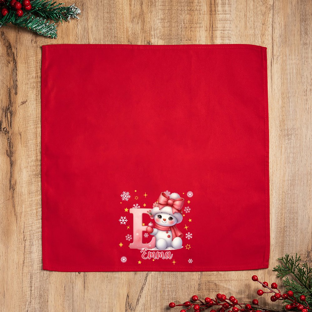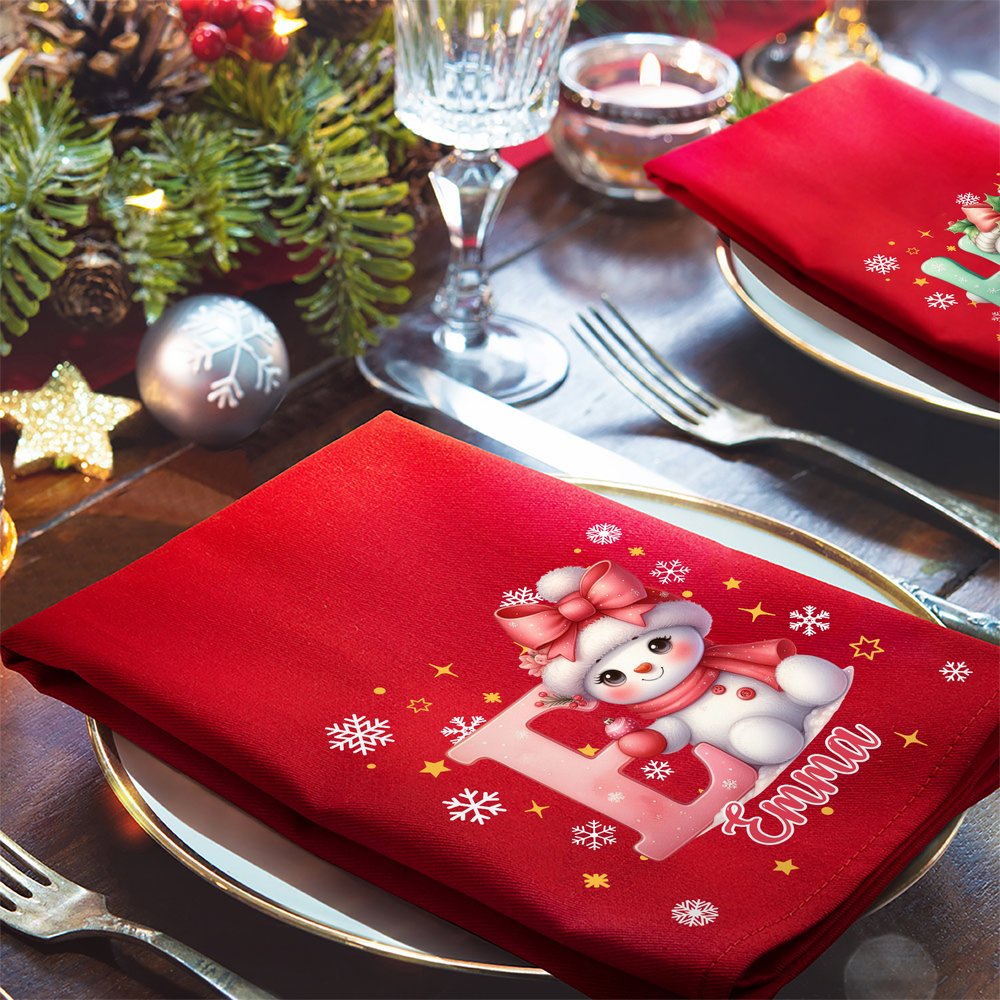 Inspired by the classic Christmas snowman, this napkin features adorable snowflakes and an initial bow element. Each napkin vividly captures the festive atmosphere, with the snowman's smile and intricate patterns filling your table with warmth and joy. You can customize it with a personalized name, allowing each diner to feel special and adding a touch of fun to the holiday spirit.