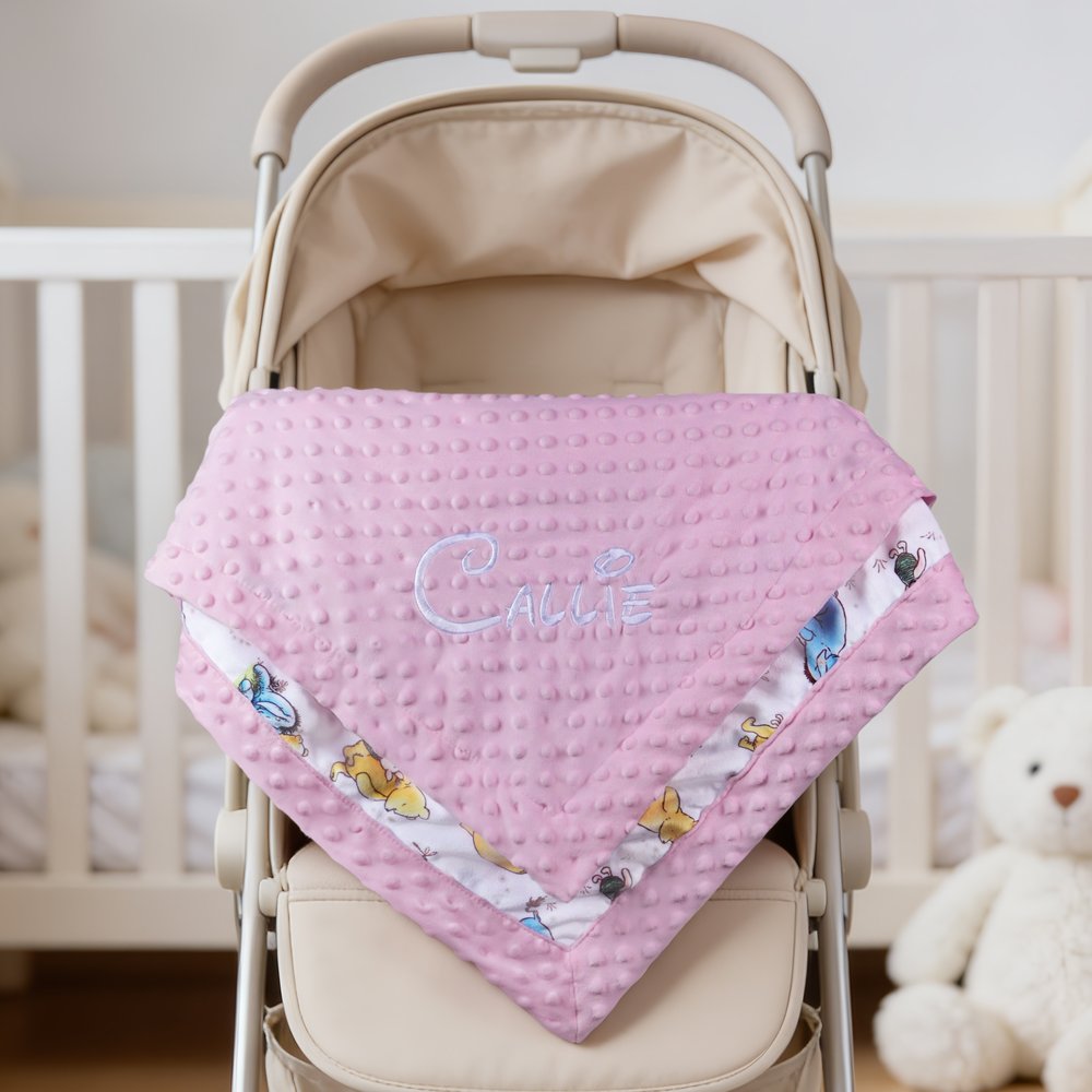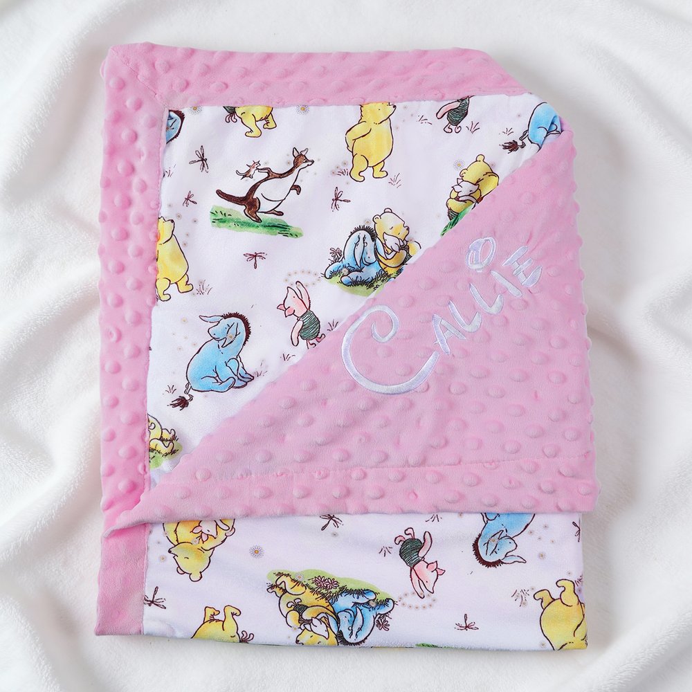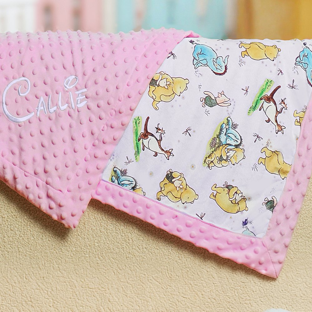 Personalized Classic Winnie the Pooh Soft Dot Blanket with Embroidered Name Nursery Bedding Decor Birthday Baby Shower Gift for Newborn New Mom