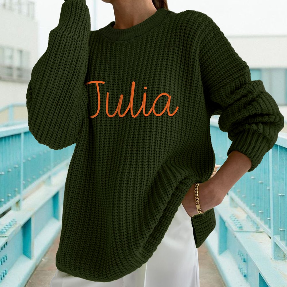 This multi-color soft sweater features customizable names, blending minimalist style with a sense of exclusivity to break the monotony of ordinary sweaters. The cotton cord embroidery creates delicate layered effects with a smooth texture that resists fading.