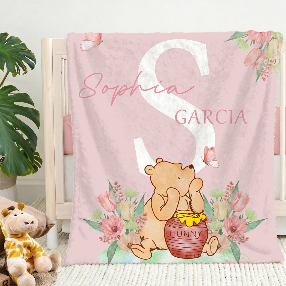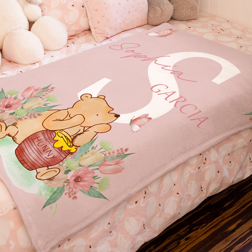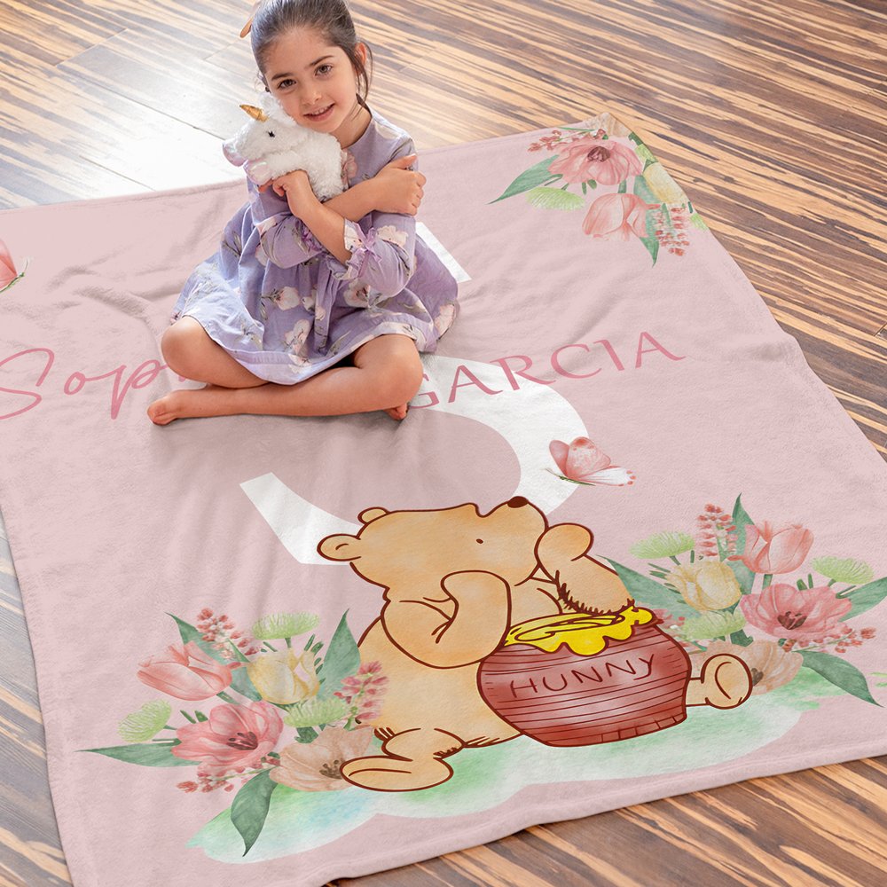 Personalized Classic Winnie the Pooh Soft Throw Blanket with Name and Initial Birthday Baby Shower Gift for Kids