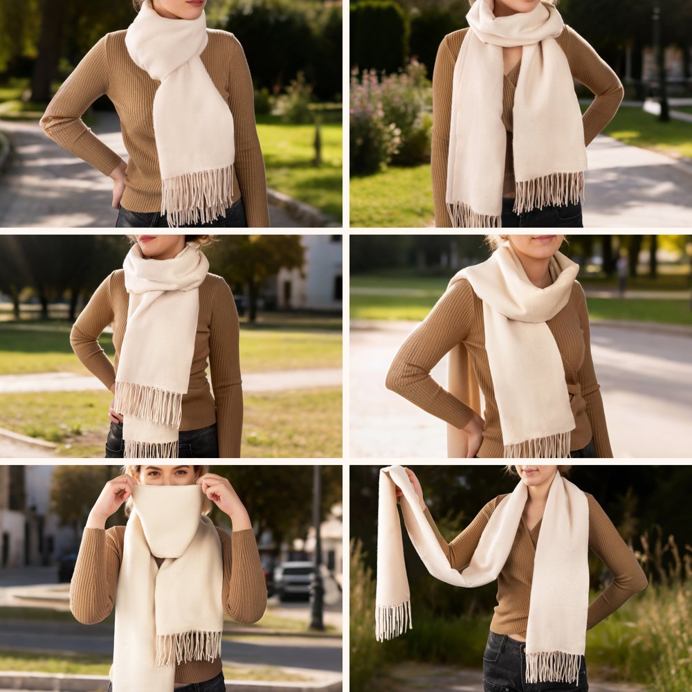 | Warm Tips: | • Please be aware that the preview may be slightly different from the physical item in terms of color due to our lighting at our product photoshoot or your device’s display. • Due to differences in measurement methods, there may be slight discrepancies in dimensions. Please refer to the actual product. • The scarf may arrive wrinkled due to compression packaging for shipping. The wrinkles will smooth out naturally over time, or can be ironed or blow-d |