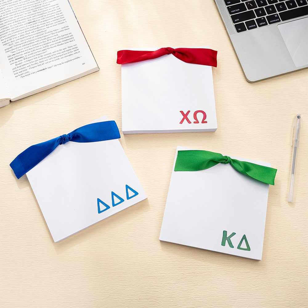 Personalized Sorority Theme Bow Ribbon Greek Letter Notepad Celebrations Gift for Sisters Friends | Callie × Affinity Licensing