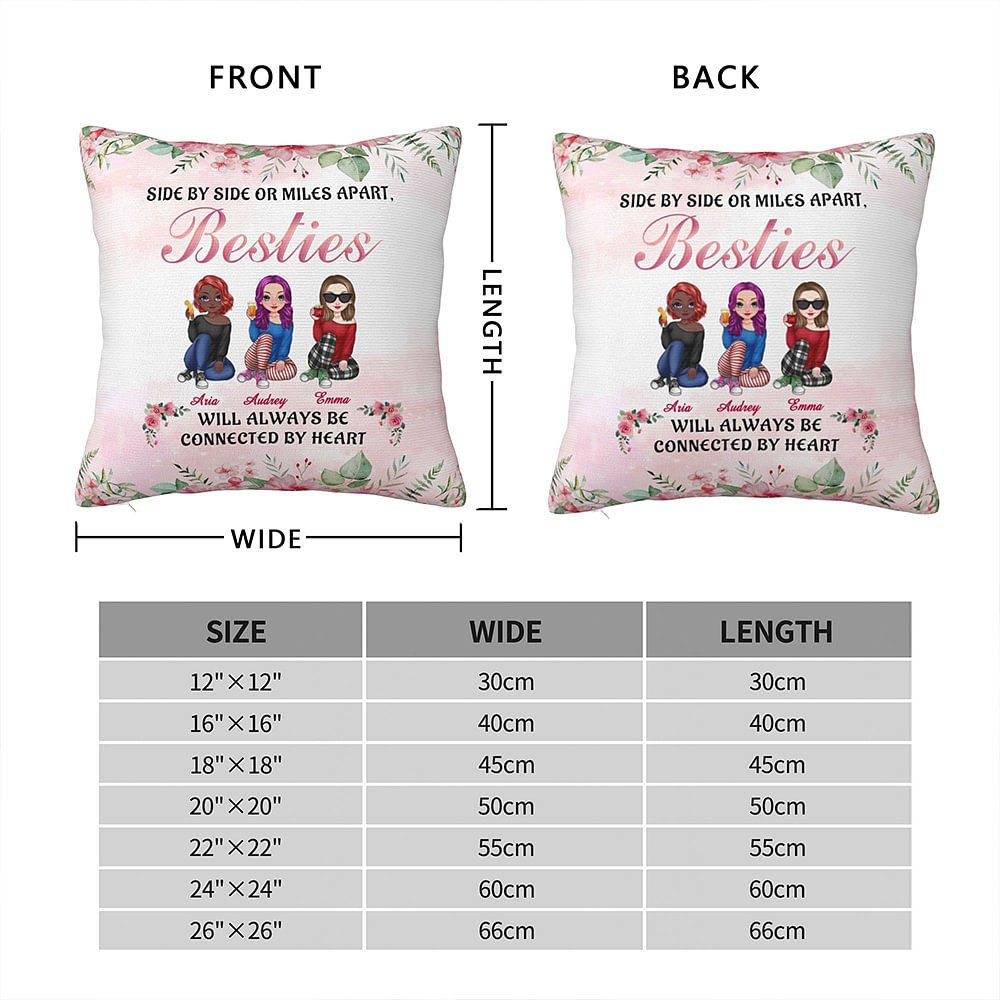 Personalized Soul Bestie Besties Will Always Be Connected By Heart Throw Pillow Cover Gift for Best Friend Sofa Decor