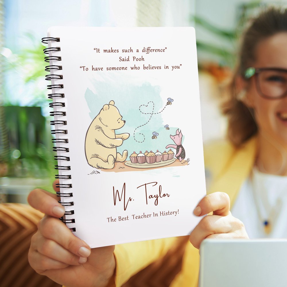 This notebook features the beloved classic Winnie the Pooh, created by the renowned author A. A. Milne, which has captured the hearts of generations. The notebook has vibrant colors and intricate illustrations that vividly recreate the healing charm of fairy tales. Four pattern design options add a special touch to the teacher’s notebook, evoking beautiful memories and warm feelings, making each use a source of joy and inspiration.
