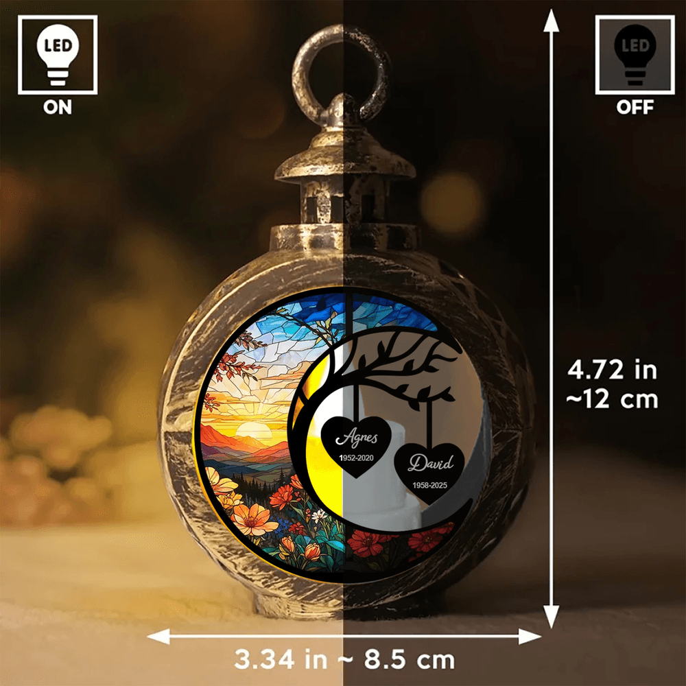 Inspired by the stained-glass aesthetic, this ornament features motifs of the moon, hearts, and trees, evoking a warm and cozy ambiance. It can be personalized with up to three names and years, infusing every detail with your family's unique story. When lit, the soft glow blends through the intricate patterns, as if capturing cherished family moments within its gentle light—each texture holding a memory of love and togetherness.