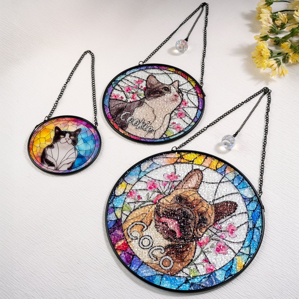 | Feature: | Fade-Resistant, Waterproof, Hangable, Window Sill Decor, Stained Glass Style, Pet Portrait Design |