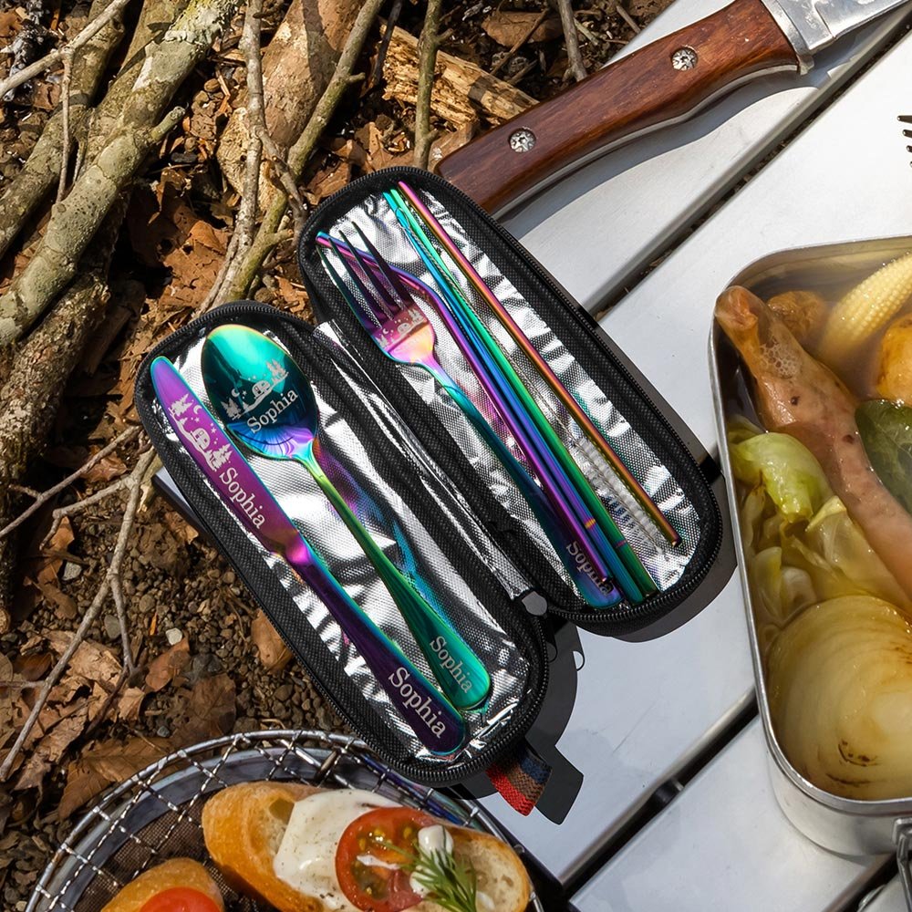 Our personalized stainless steel portable travel utensils picnic cutlery set is the perfect companion for all your outdoor adventures. Made from high-quality stainless steel, these utensils are not only durable but also reusable, allowing you to reduce waste and contribute to a greener planet. This product is suitable for outdoor camping, school lunches, outings, hikes and picnics.
