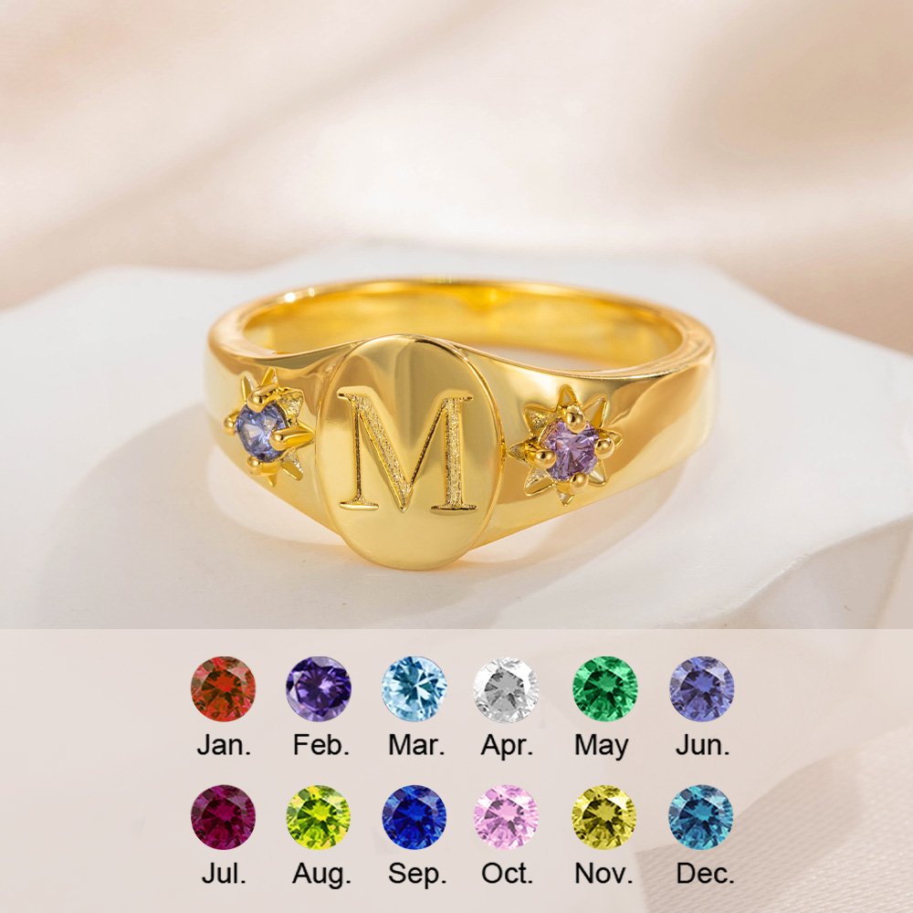 Whether you're looking for a special gift for a loved one or treating yourself, our sterling silver birthstone signet Initial ring is a beautiful and meaningful choice that will be treasured for years to come. So, elevate your style with this elegant gemstone ring today!