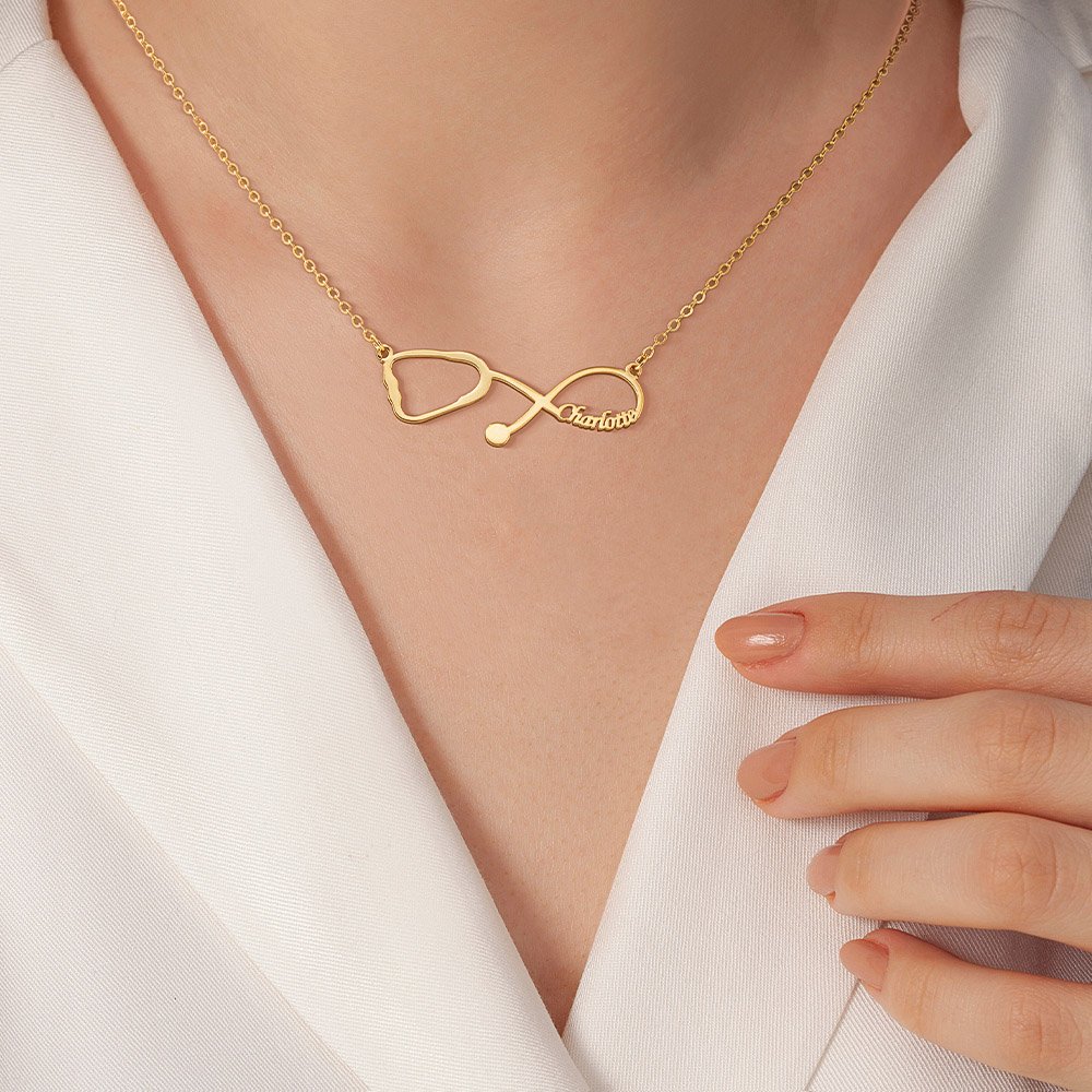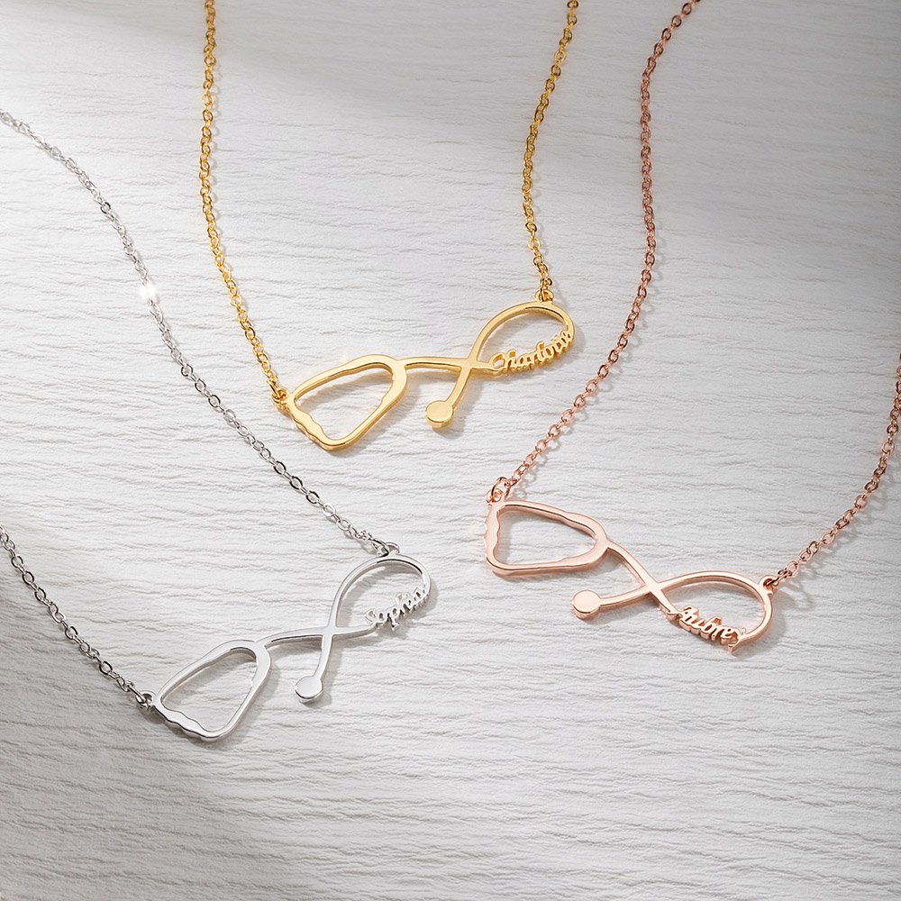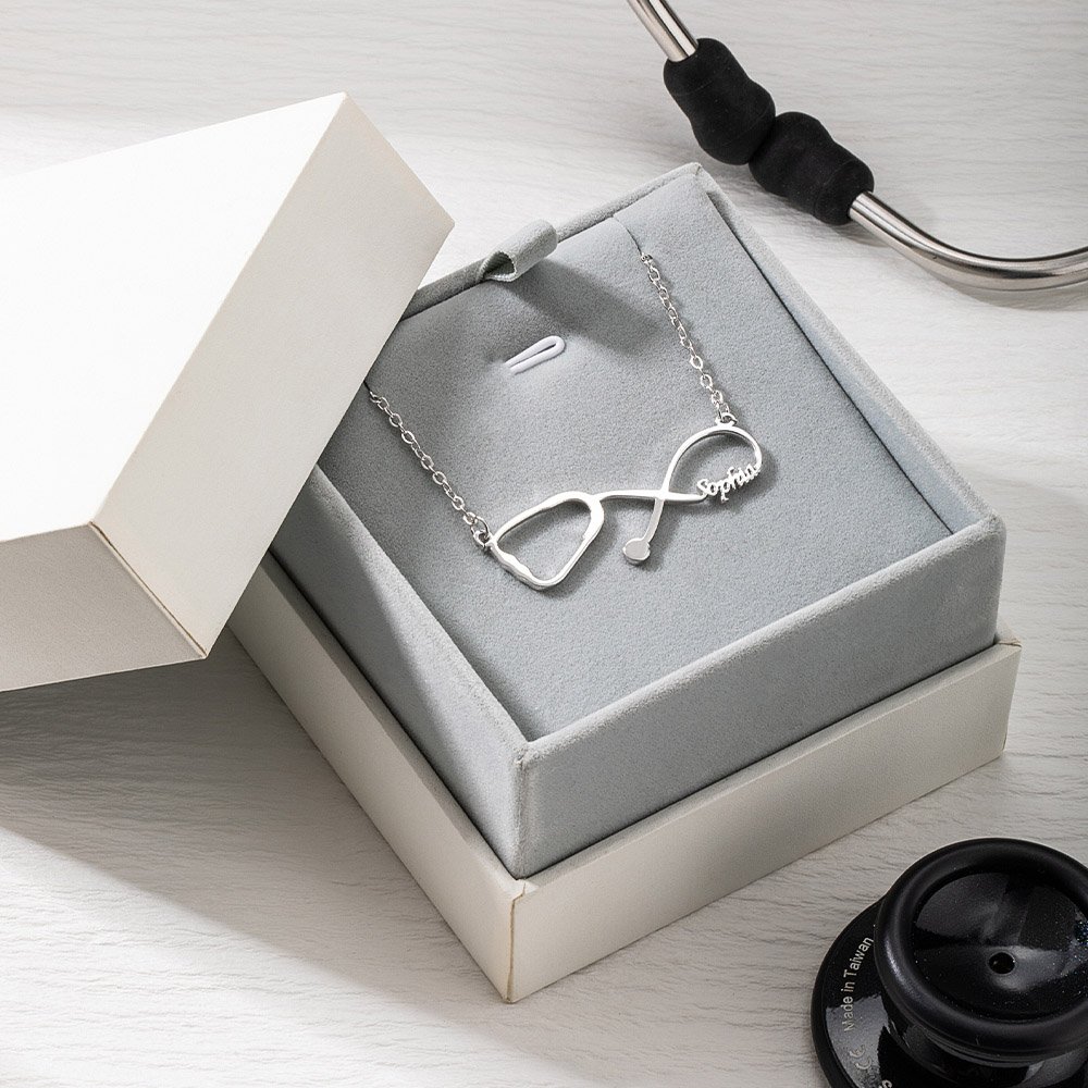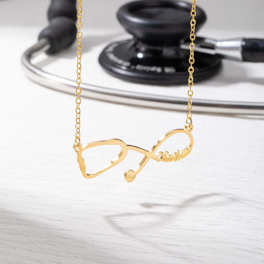 Our stethoscope infinity necklace is the perfect gift for a nurse or medical student. This necklace can be customized with their name, adding a personal touch to the piece. It's a thoughtful and meaningful way to celebrate their graduation or birthday and show appreciation for their dedication to the medical profession.
