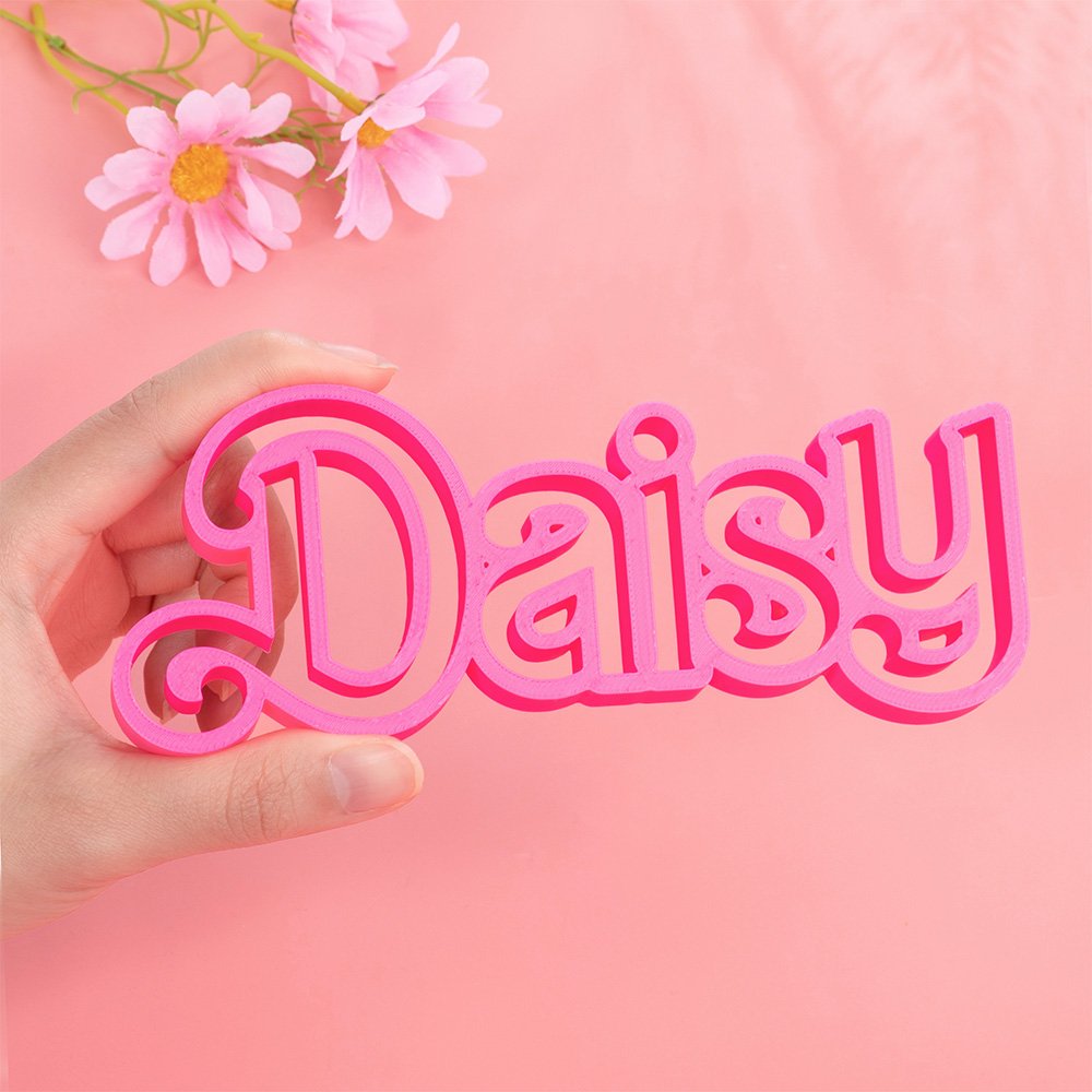 Crafted using high-quality 3D printing technology, this nameplate is durable and made to last. The nameplate is 3D printed to create a unique, dimensional effect for the letters. It has a glossy finish, the perfect size to show off her name in any room. The back has a flat back so it sits upright on any flat surface.