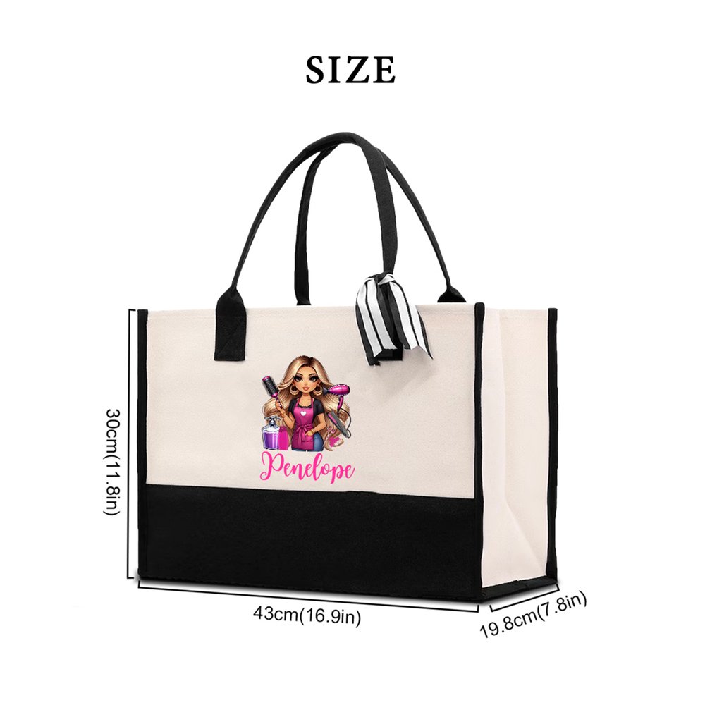 It features a stylish cartoon hairdresser image. Customize hairstyles, expressions, scissors, and hair dryers as you like. Add your name with exclusive fonts, turning each bag into a unique “career symbol”. Whether for daily work or industry events, it shows personality and career passion.