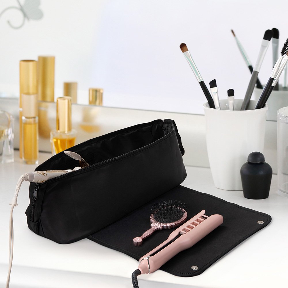 The bag includes a heat-resistant mat, ensuring you can safely place hot styling tools without damaging countertops. This feature adds an extra layer of protection, allowing you to store your tools safely even before they cool down, providing peace of mind during use.