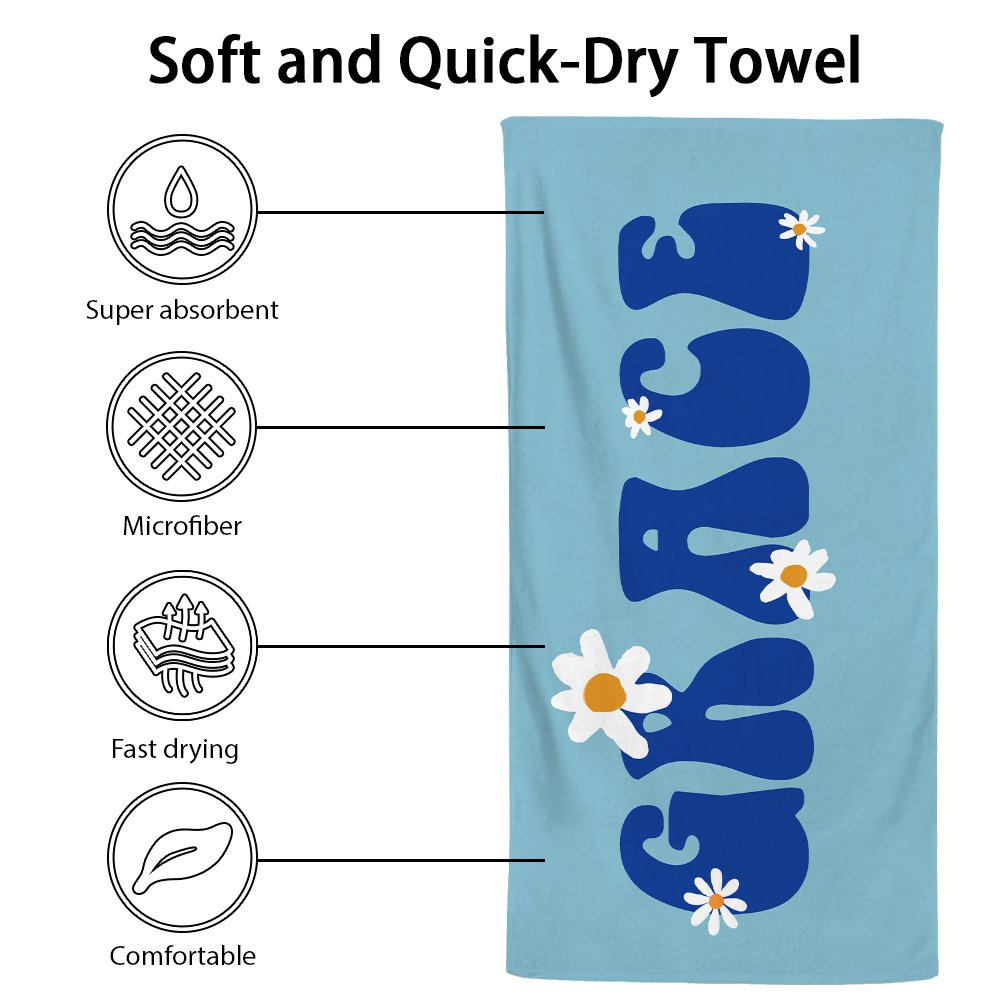 | Feature: | Soft and Skin-friendly, Super Absorbent and Fast Drying, Name Beach Towel, Daisy Flower |