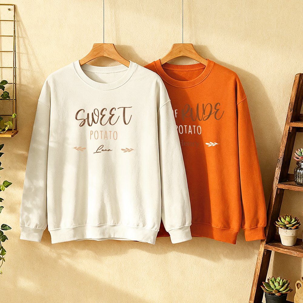 Feature: Classic Crewneck, Skin-Friendly, Breathable, Sweet Potato & Kind of Rude Potato Design, Autumn Style, Name Customization
