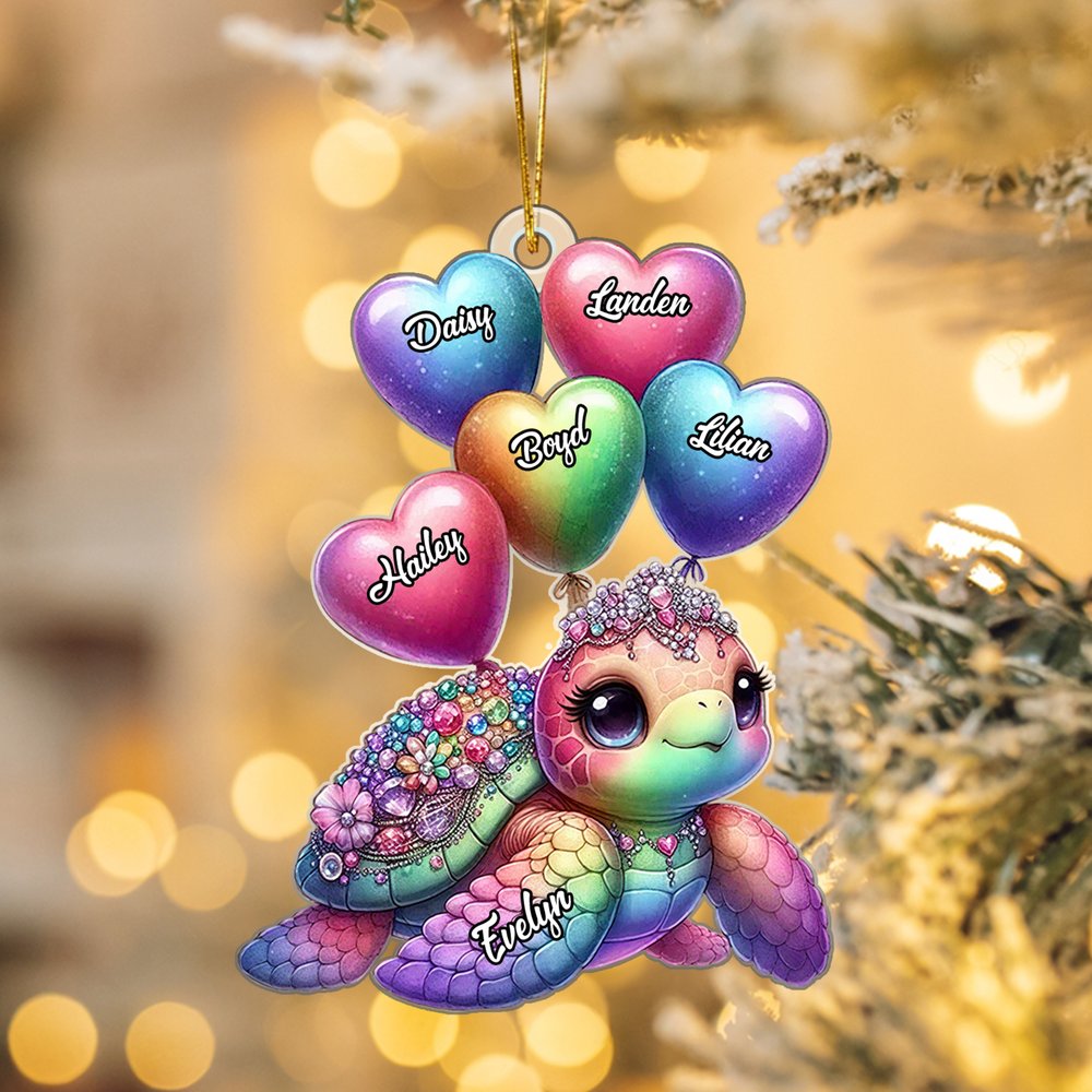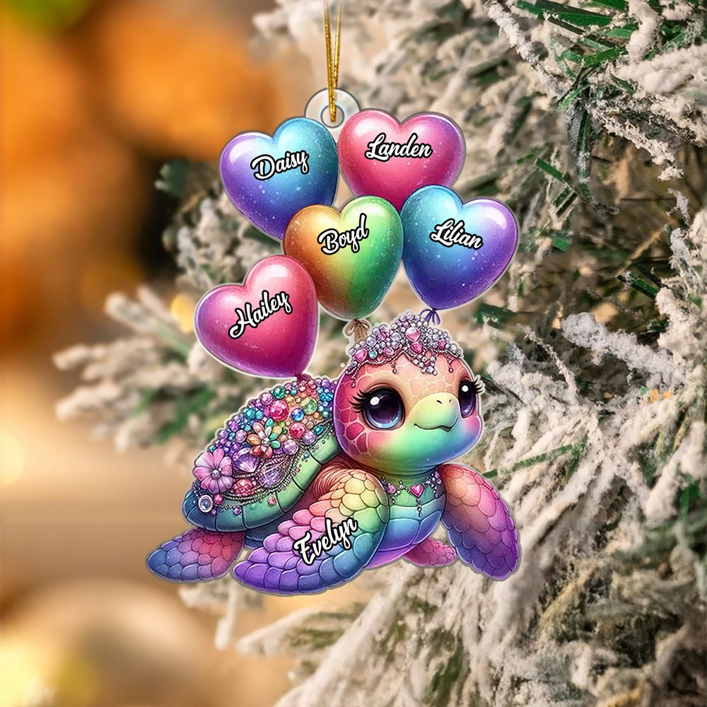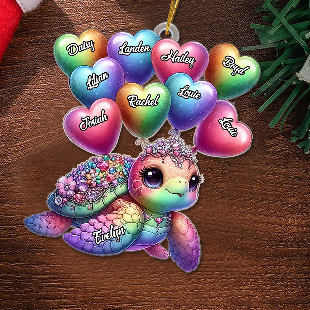 Inspired by a beautiful mother turtle, this exquisite acrylic ornament cleverly blends warmth and personality, embellished with heart balloons. It can be customized with the names and nicknames of 1-10 children, transforming each loving moment into a unique symbol. It becomes a warm bond between a grandmother or mother and her children, embodying love and longing.