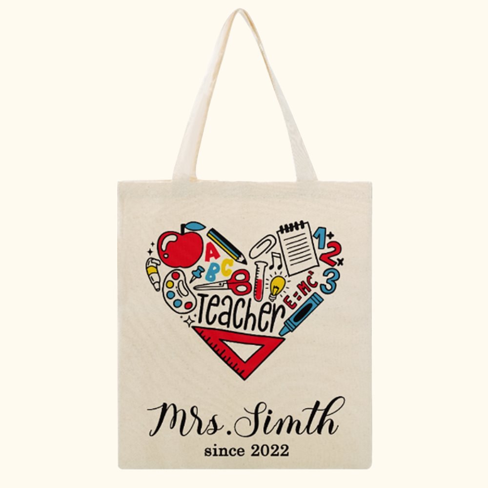 Show your favorite teacher some love with these cute, fun, personalized teacher tote bags designed especially for teachers. There are 7 designs for you to choose from.