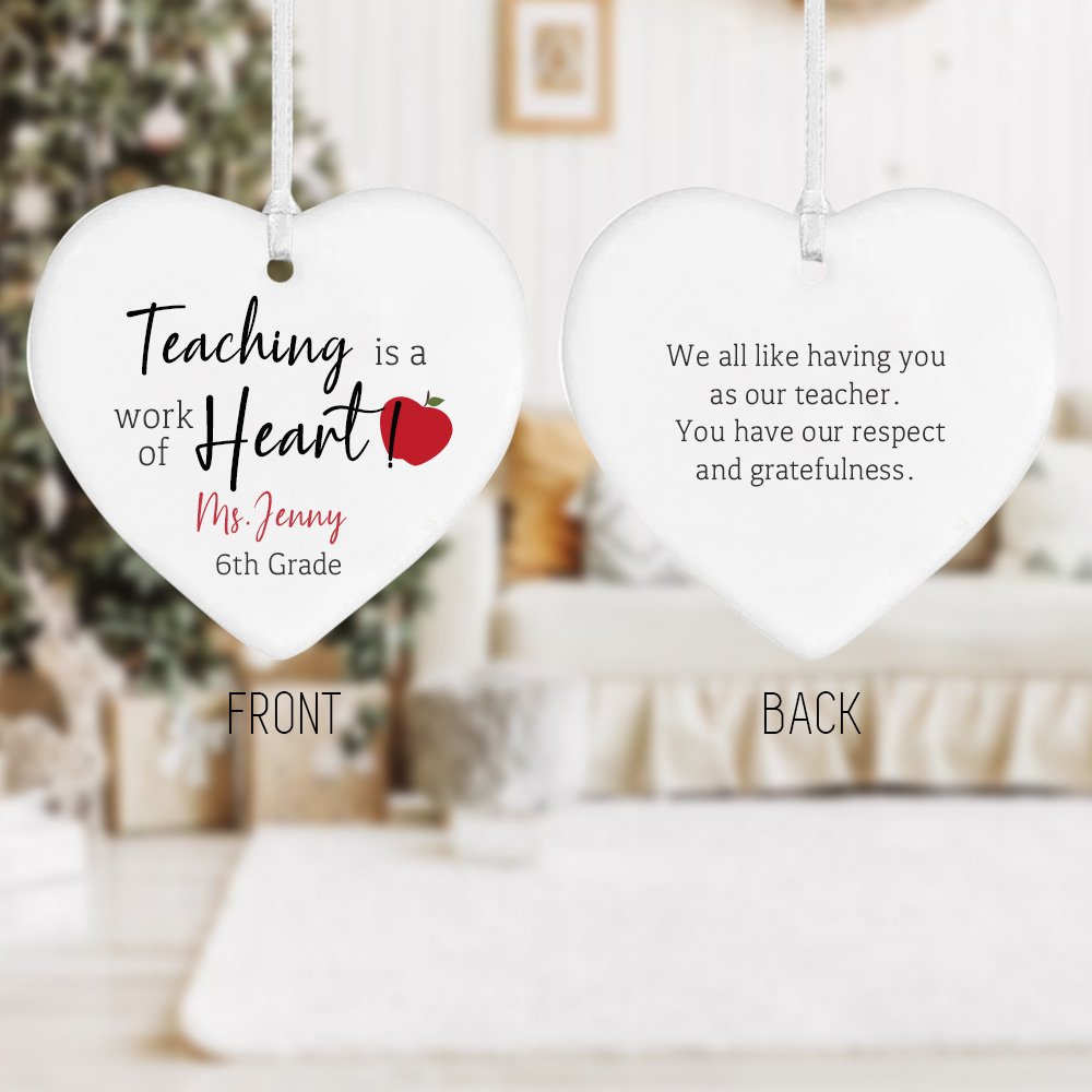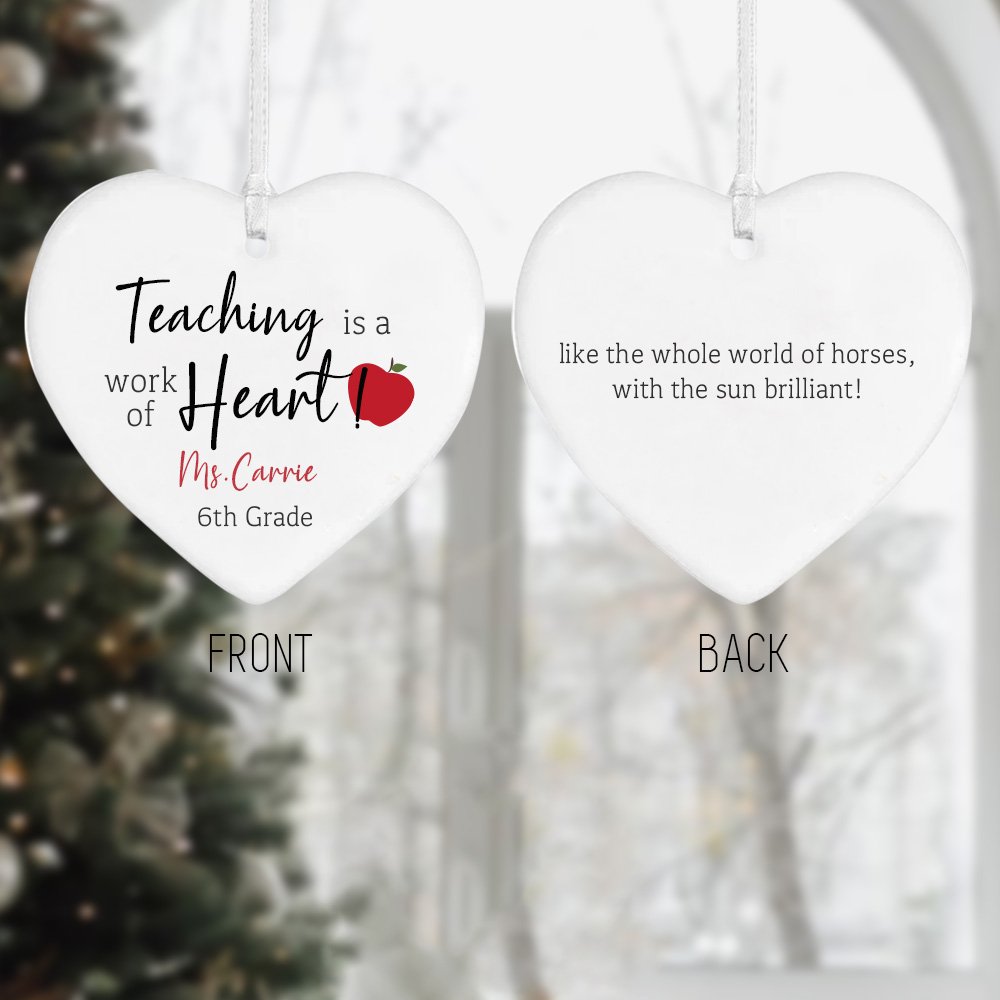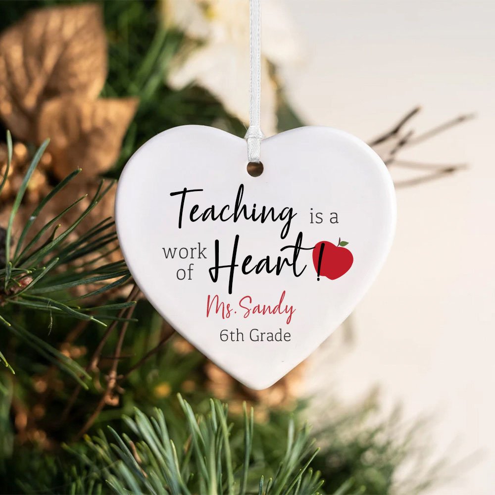 The heart shape ornament printing with "Teaching is a work of heart " will be a perfect way to show your own teacher how much you appreciate them. You also can customize the teacher's name, school name, and blessing on the pendant to make a thoughtful gift for a teacher.