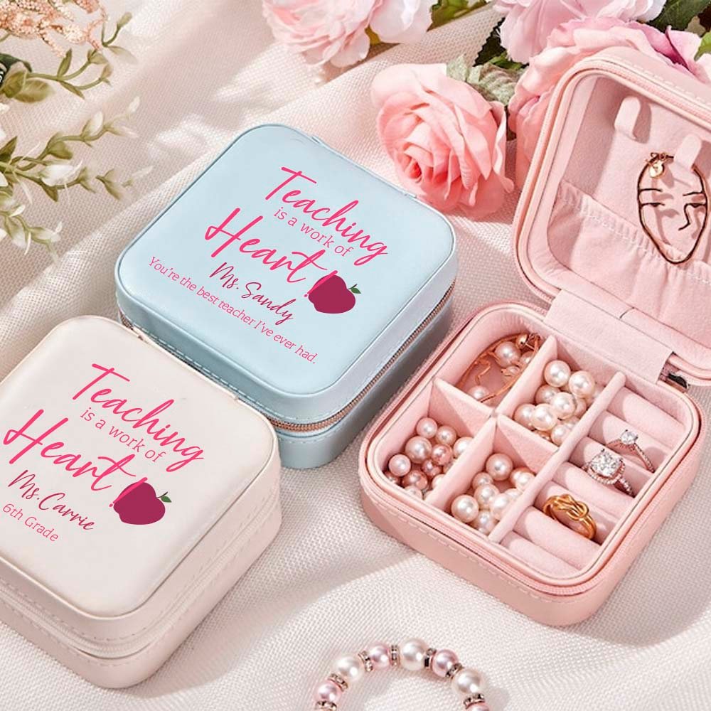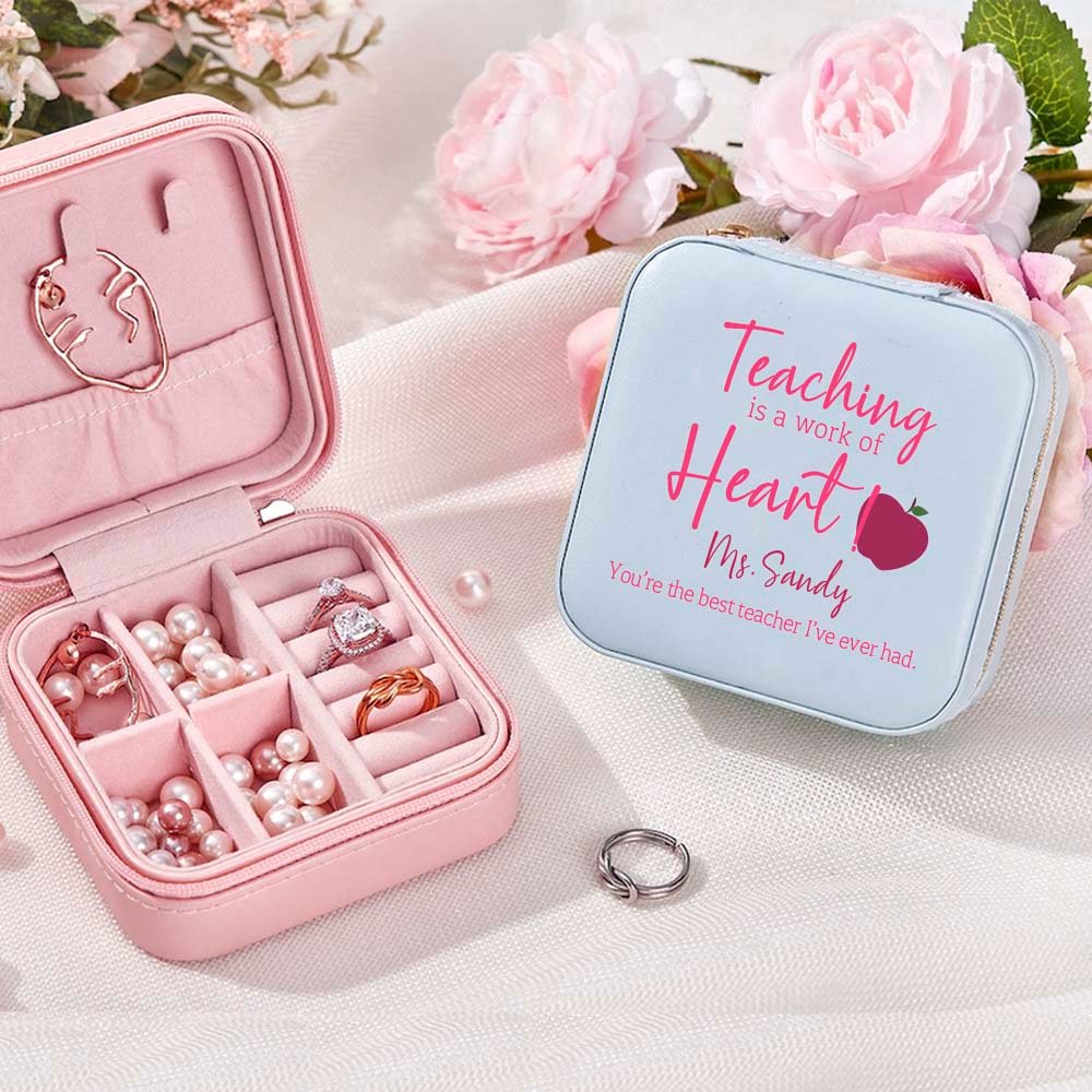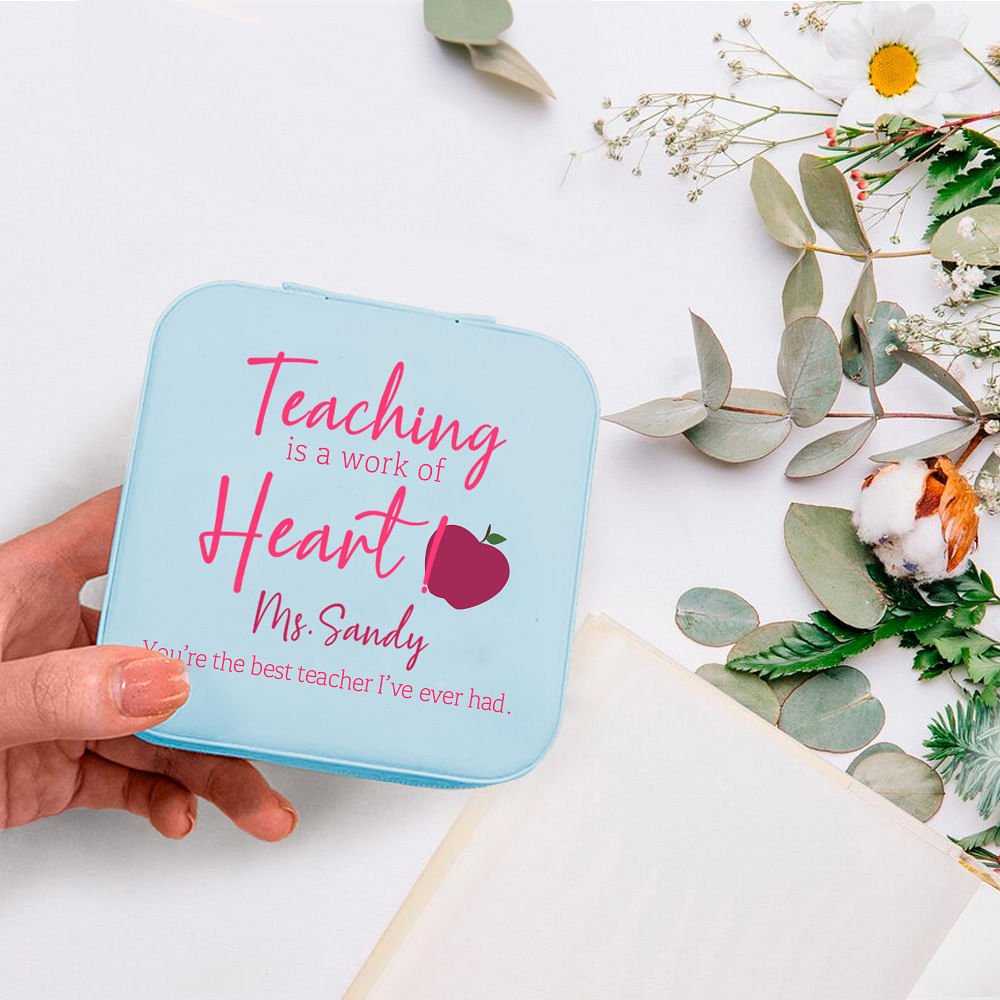 Are you looking for the perfect gift to show your appreciation for a special teacher in your life? Look no further than our personalized "Teaching Is a Work of Heart" jewelry box. This thoughtful and heartfelt gift can be customized with a teacher's name and a special text, which is perfect for teacher appreciation, Thanksgiving, or even a birthday gift for teachers.