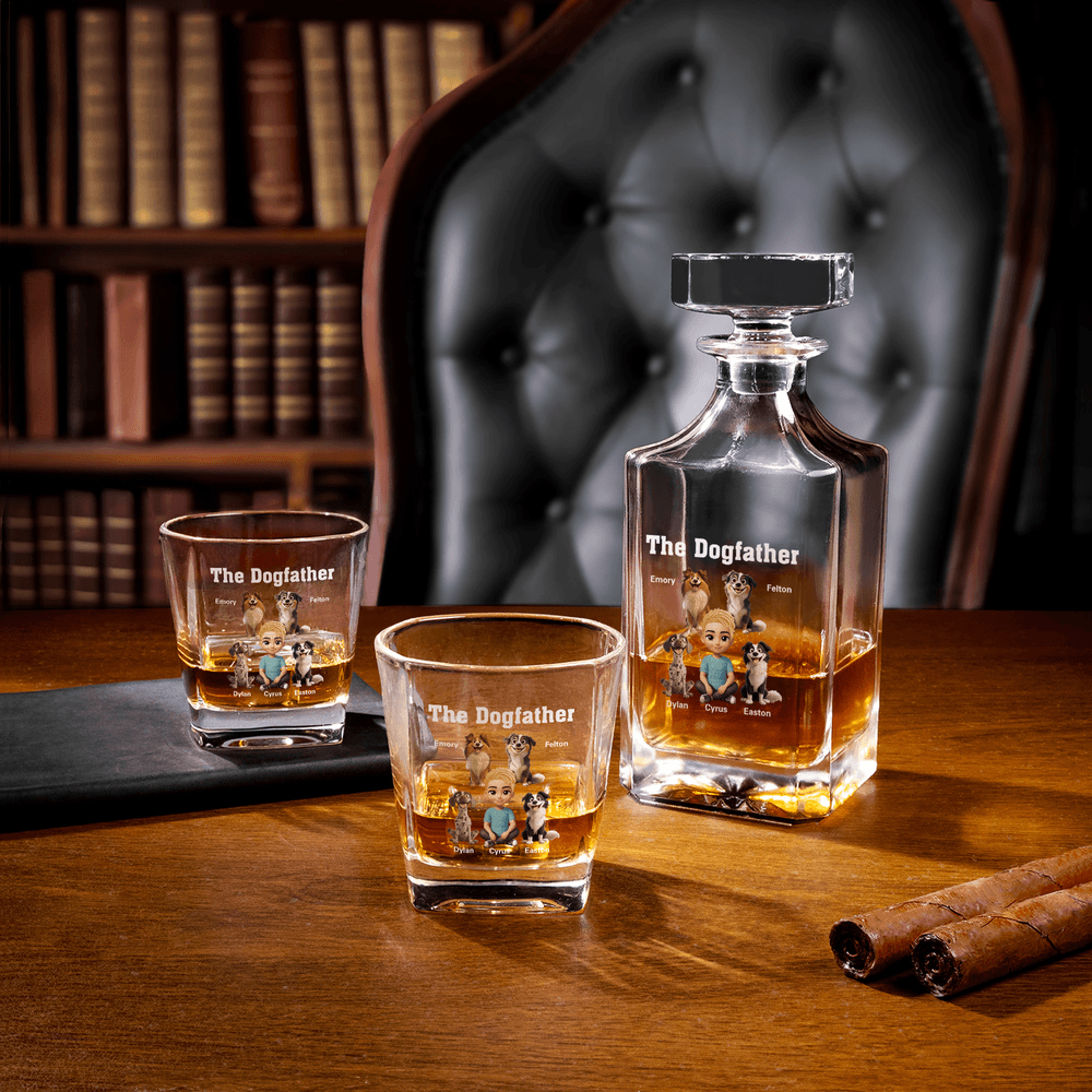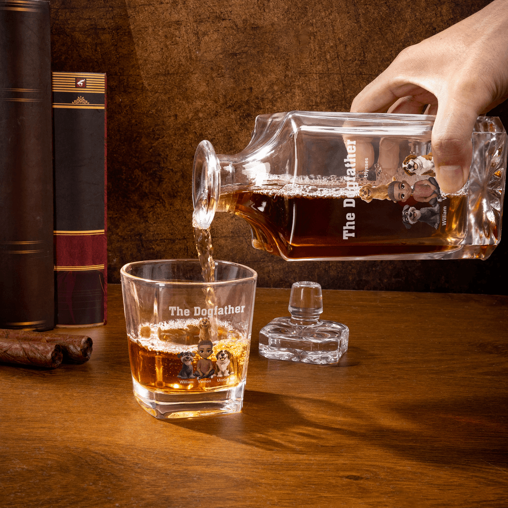 Personalized The Dogfather Character 1-4 Dogs Whiskey Decanter with Name Birthday Anniversary Gift for Whiskey Lover