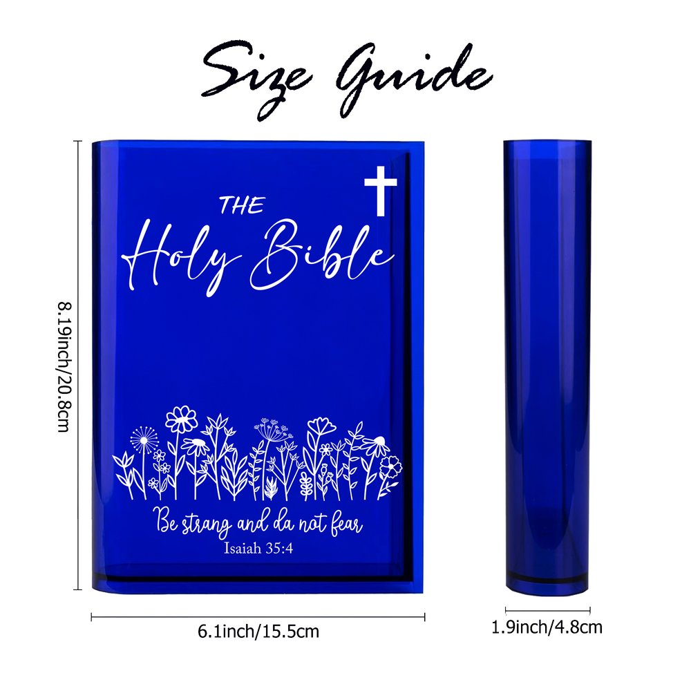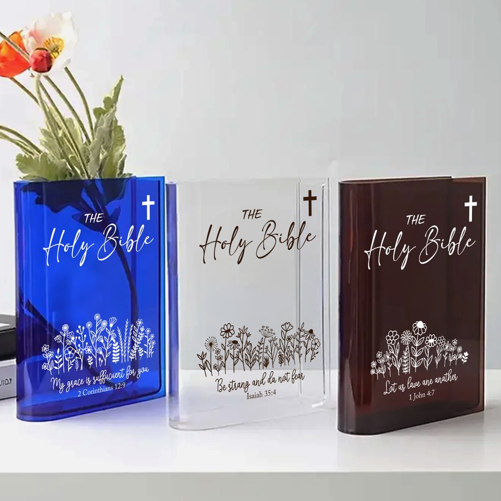 This bookend vase cleverly combines faith and fashion! It is not only a practical decorative item but also a spiritual work of art. Printed on a transparent material, it showcases images of a cross and flowers, along with the fixed text "The Holy Bible", conveying a message of faith and comfort. Customizable title and text make each piece unique.