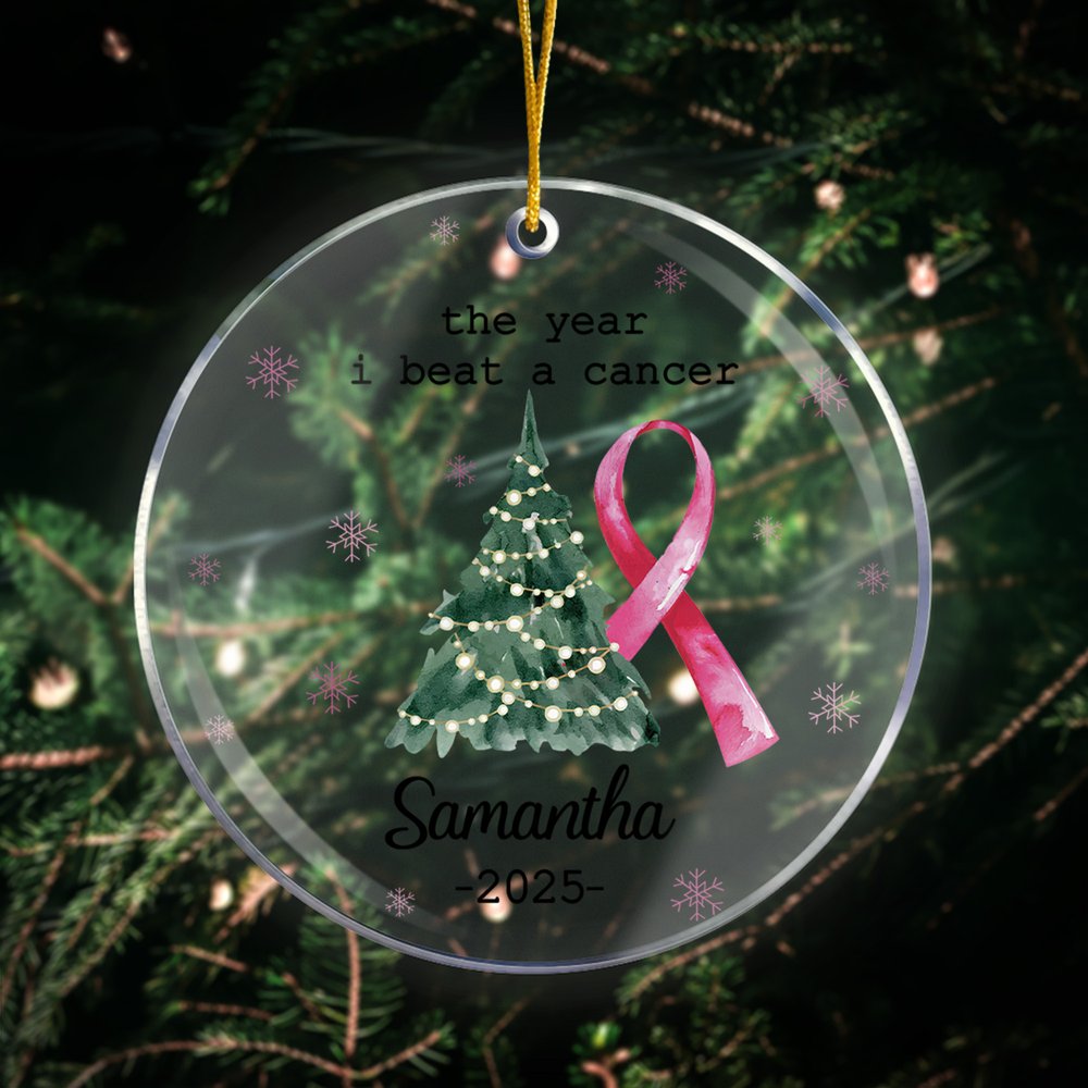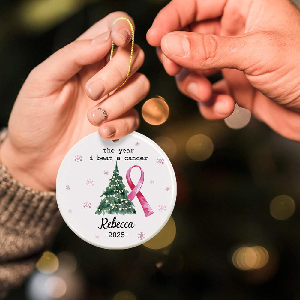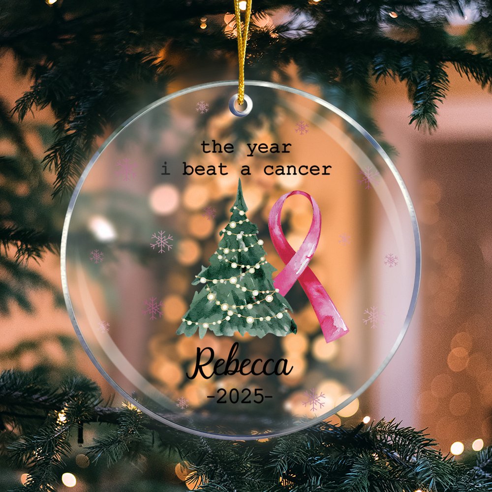 Personalized The Year I Beat A Cancer Acrylic Ceramic Ornament with Name Tree Decor Christmas Gift for Family Friends