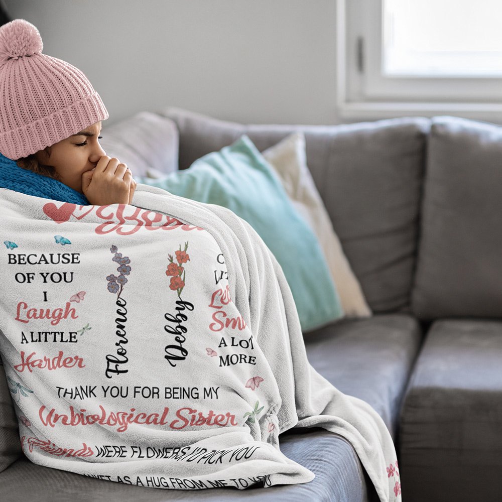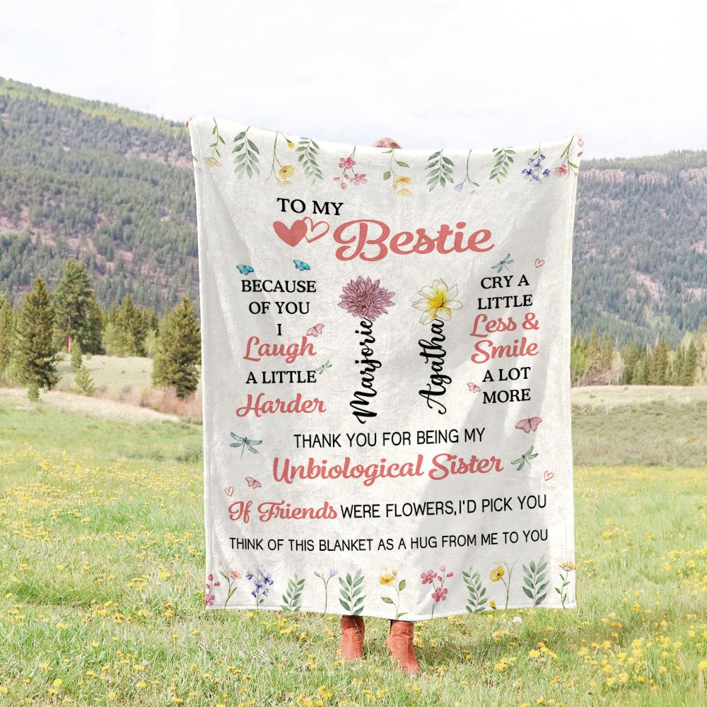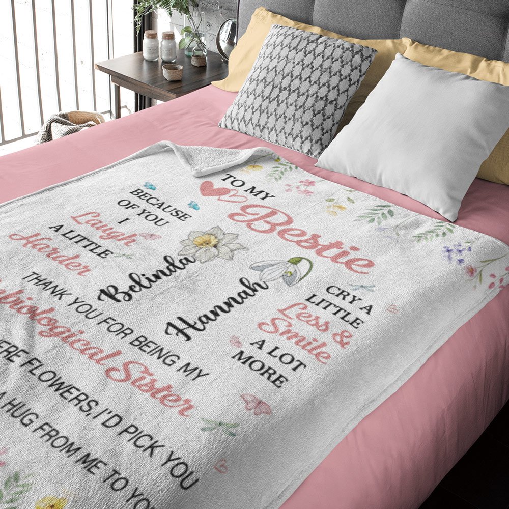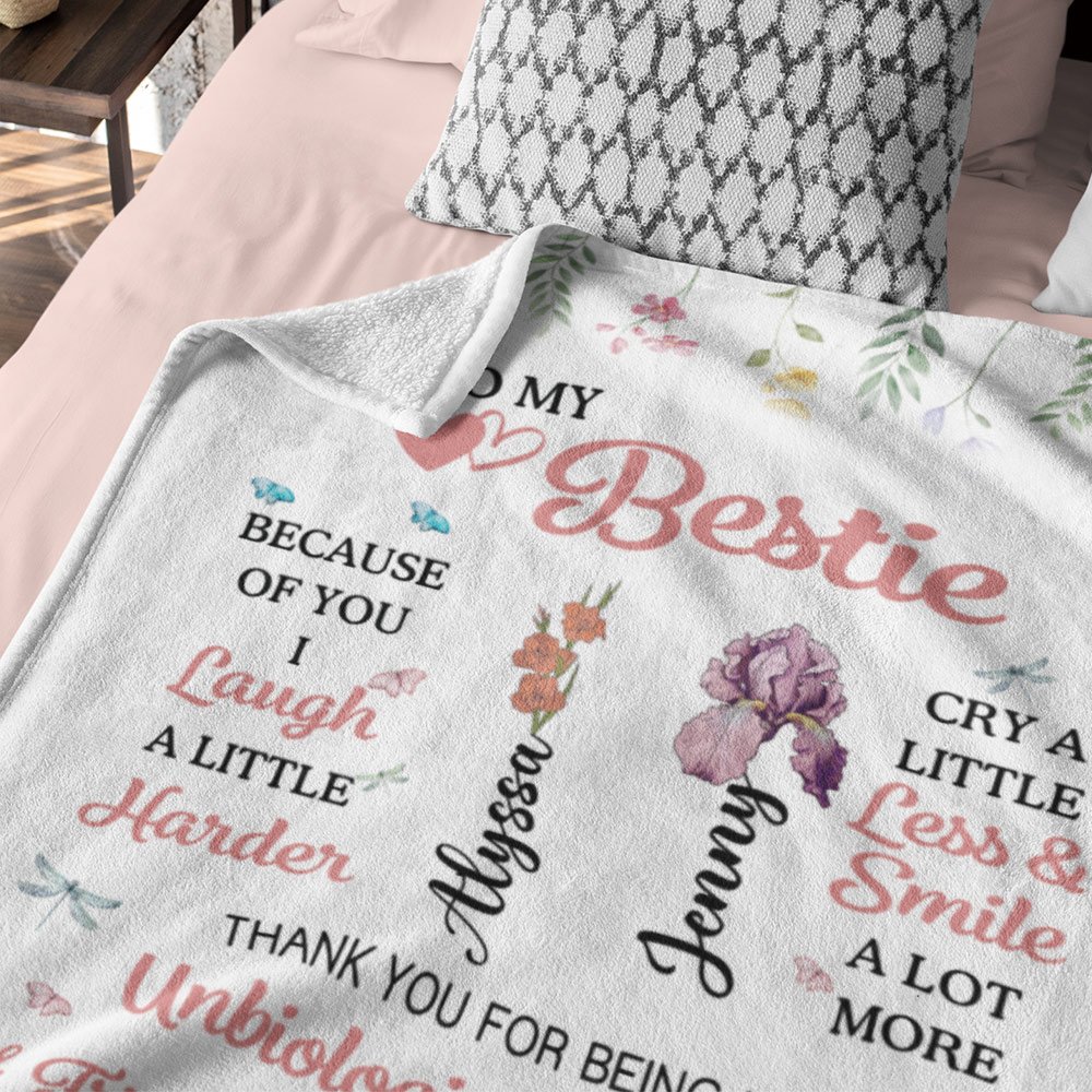 This To My Bestie blanket allows you to add birthday flowers and both your and your best friend's names, with text that symbolizes your feelings, making it a truly unique gift. It's a special way to commemorate your precious friendship and show your best friend how much they mean to you.