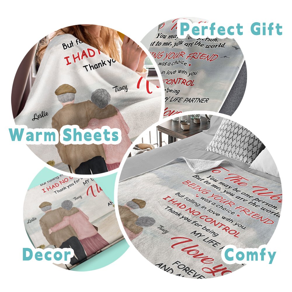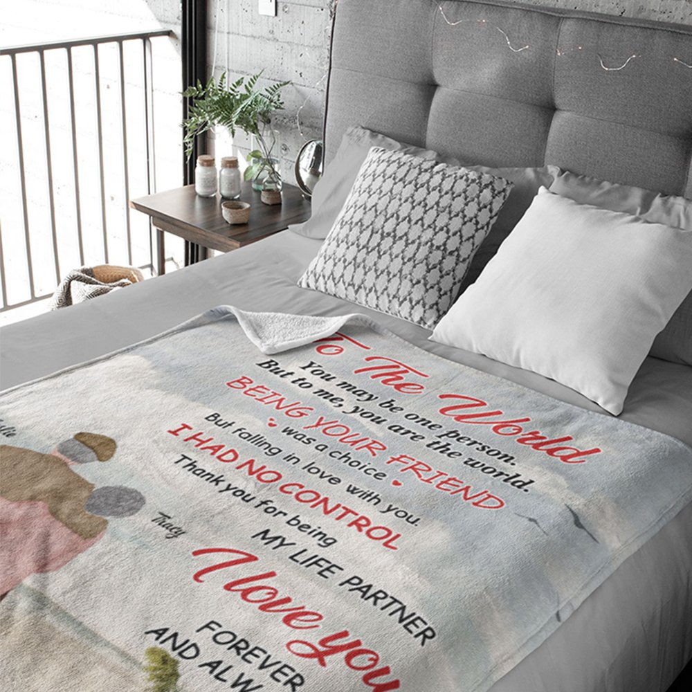 The "To The World You May Be One Person But To Me You Are The World" quote celebrates the unbreakable love you share with your lover. Make this romantic love last forever by printing romantic quotes on the blanket and customizing it with your names.
