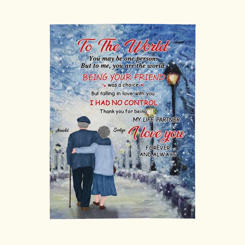 Personalized To The World You May Be One Person But To Me You Are The World Blanket Flannel Sherpa Husband's Gift Wedding Anniversary