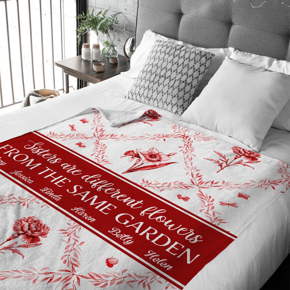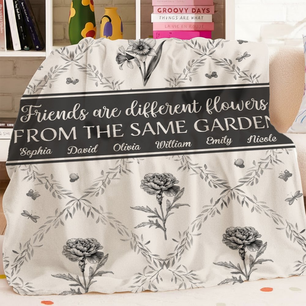 This blanket is designed around the core concept of "sisters are different flowers in the same garden," blending classic Toile de Jouy with birth flower elements to evoke the beautiful imagery of blooming garden flowers. You can choose 2-6 birth flower designs and customize the corresponding number of names to infuse your sisterly affection and heartfelt sentiments into the design, creating a unique and exclusive piece.