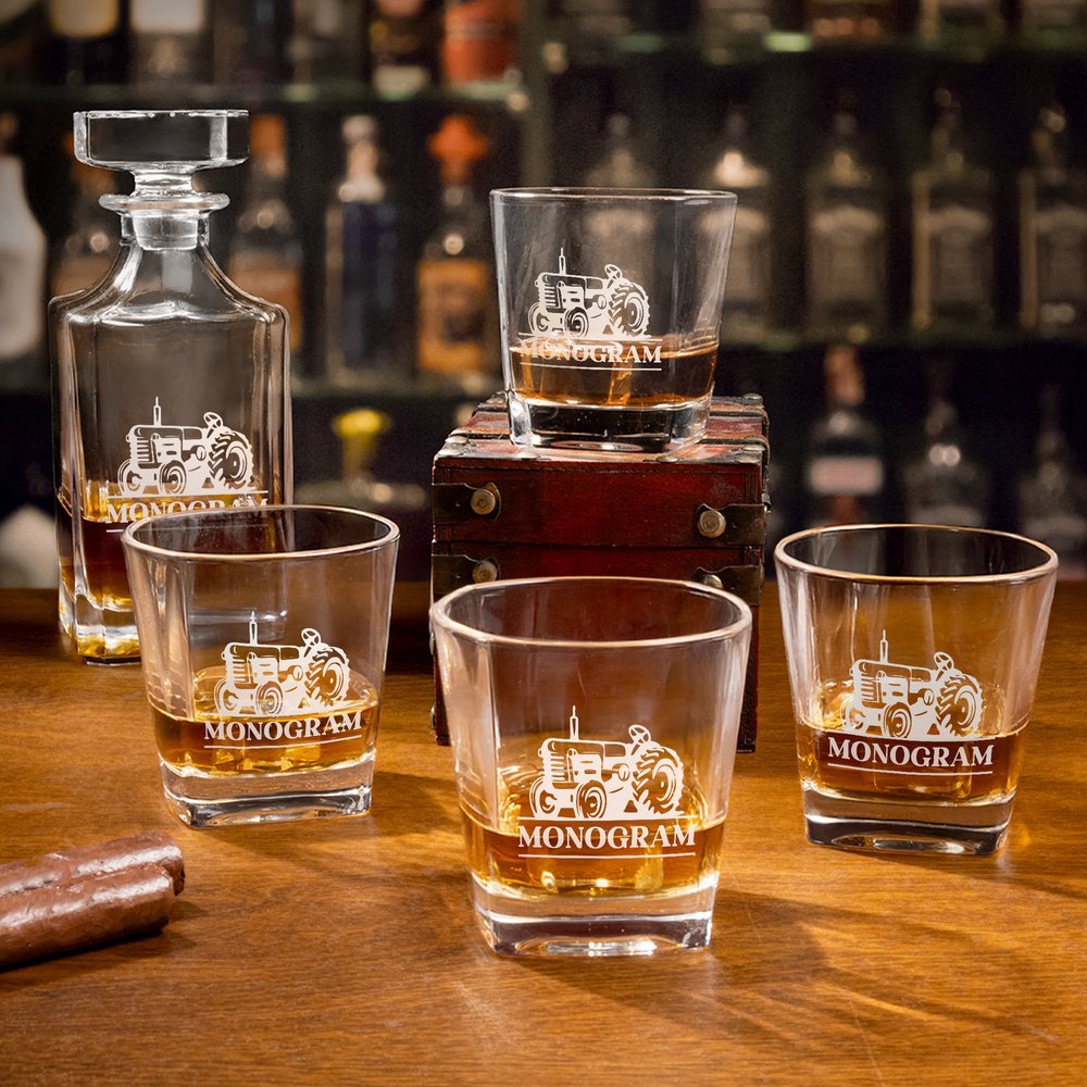 This whisky decanter set features a unique tractor pattern at its core, complemented by personalized laser engraving. The decanter, glasses, and wooden box can be customized with your name, and provide nine patterns of tractors for you to choose from, creating a one-of-a-kind item. It showcases your unique taste and serves as a commemorative and stylish piece of whisky accessories.